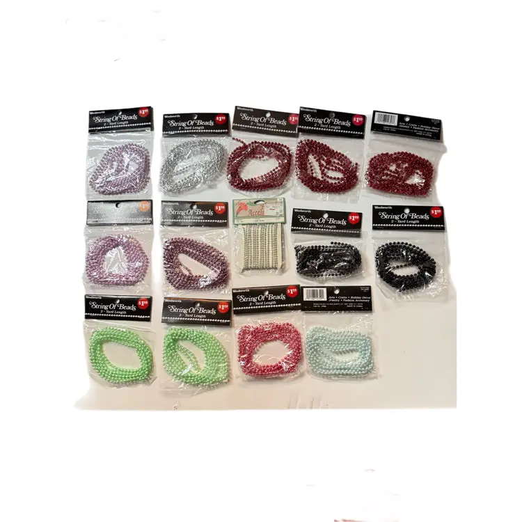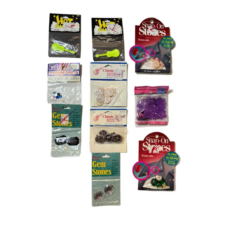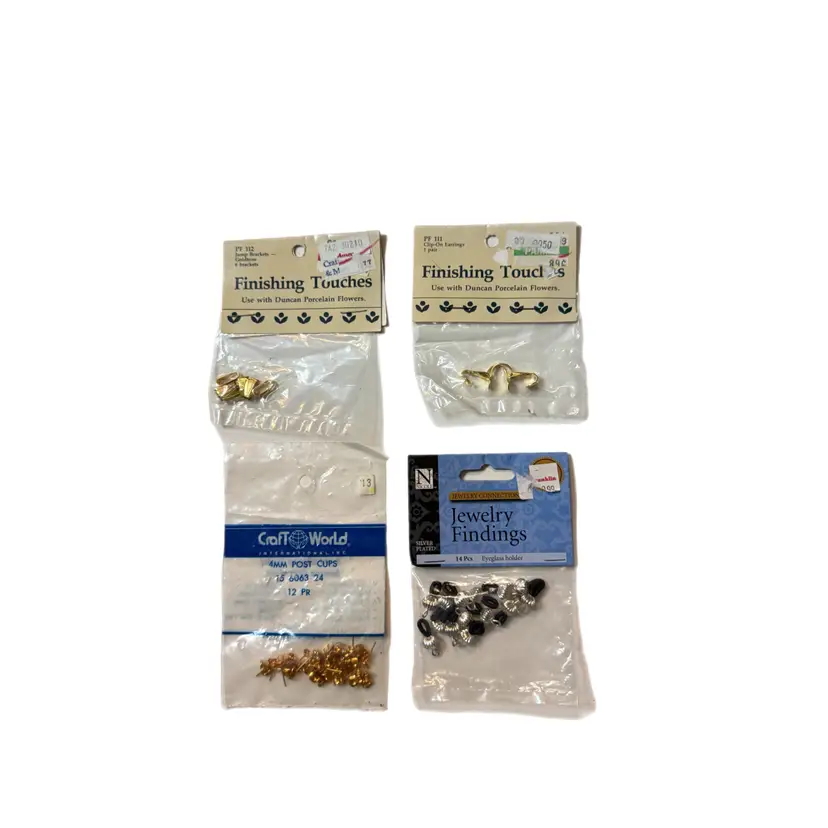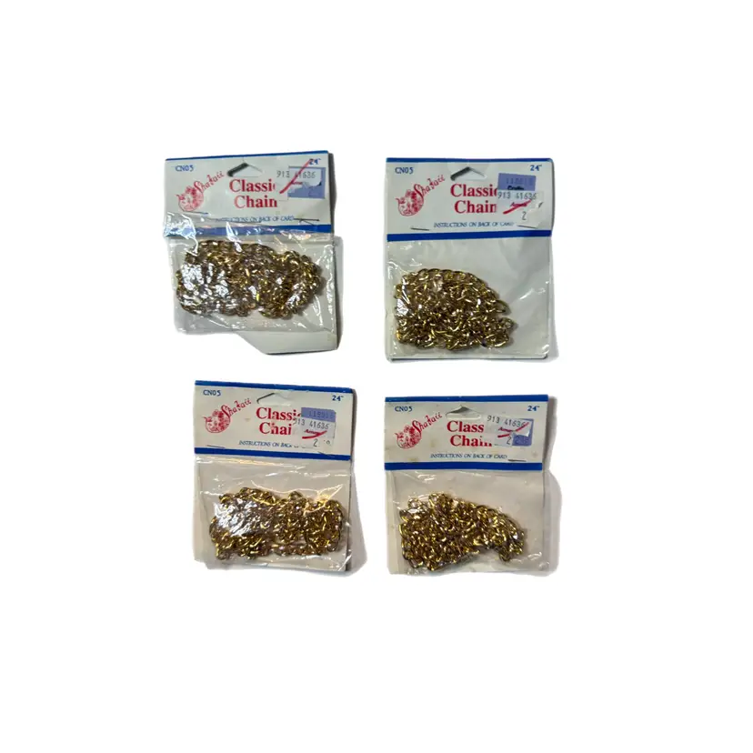 Box of 4 chains, 10 attachments,13 strings of beads, 4 bags of attachments, some of the bags have been opened and stapled and some are unopened. All seem to be from some's jewelry making supplies. Vintage
