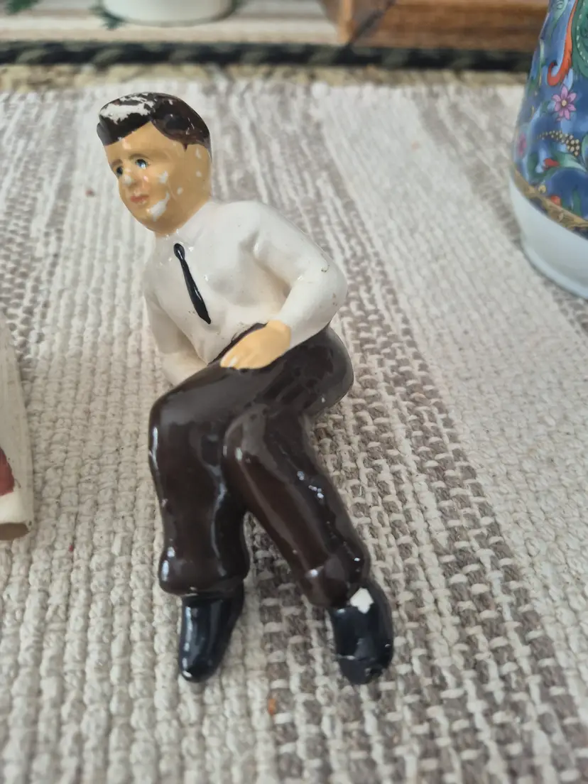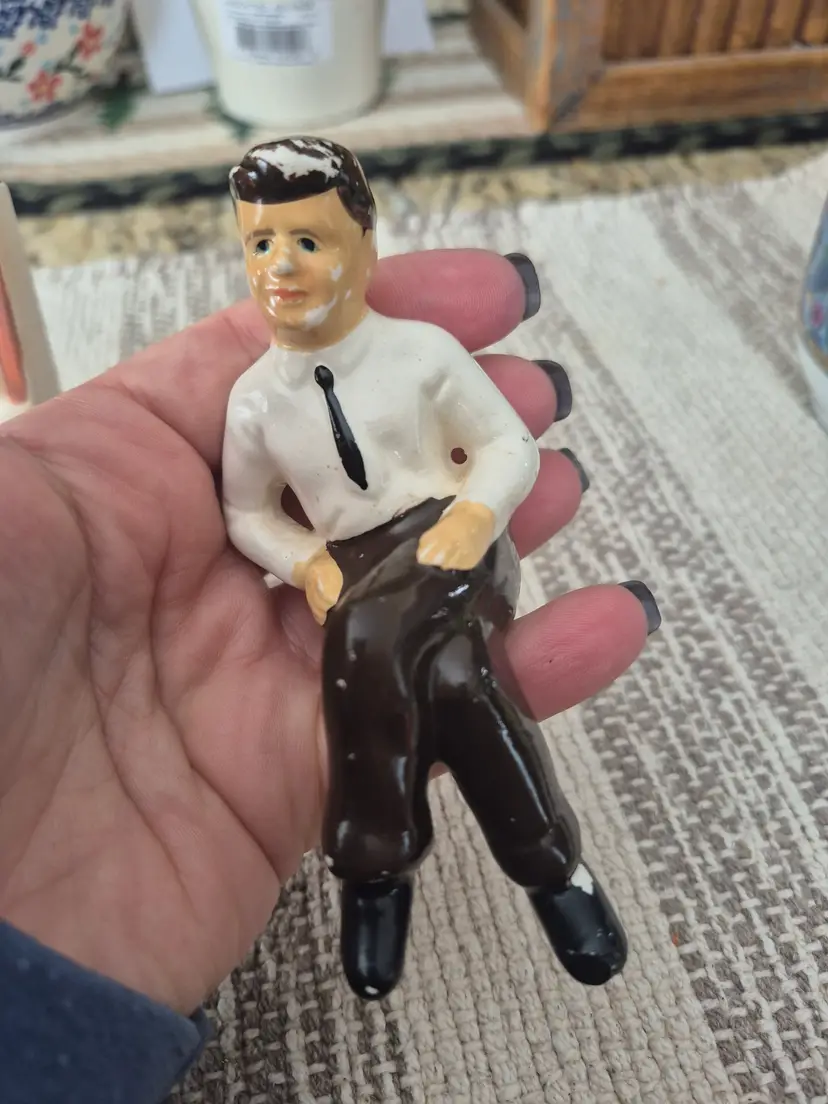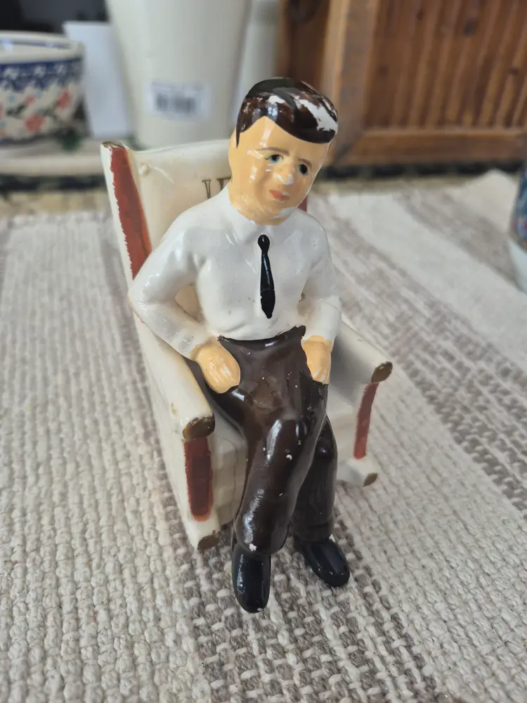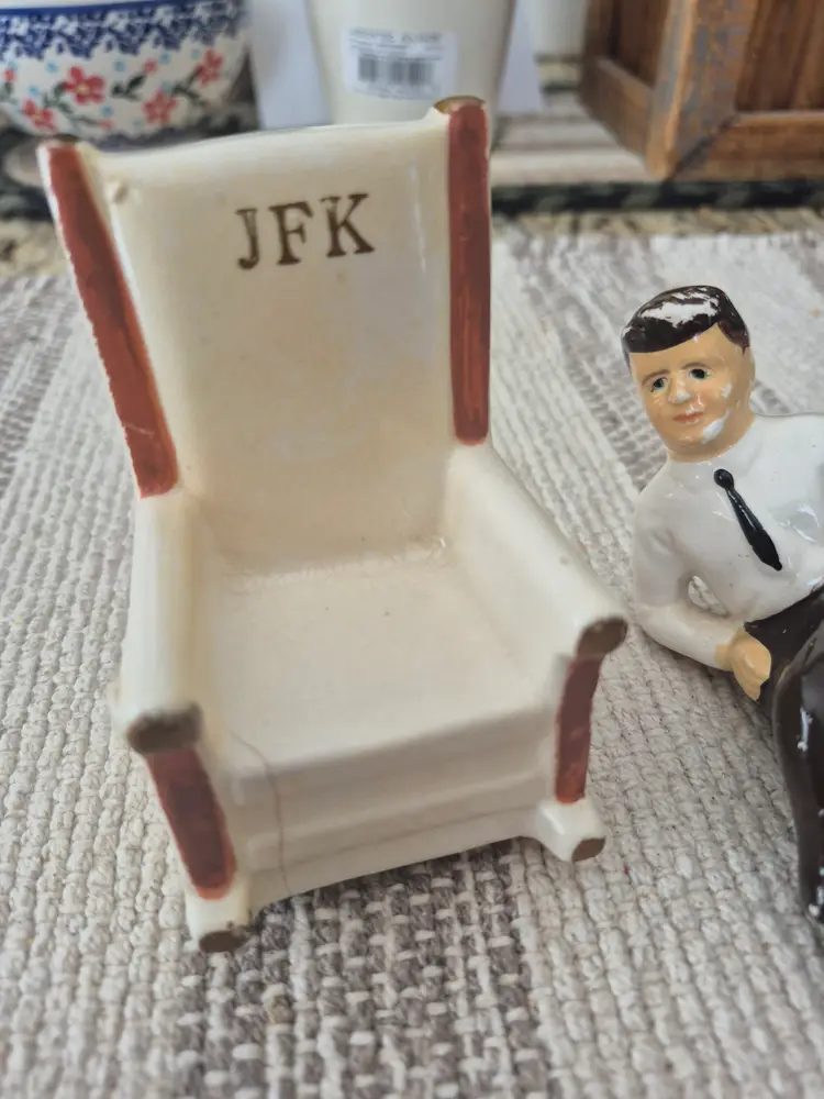 Unique JFK figurine seated in a detailed chair. A charming collectible for history buffs.