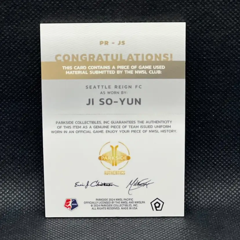Ji So Yun 2024 Parkside Pacific Relic Seattle Reign Soccer Card