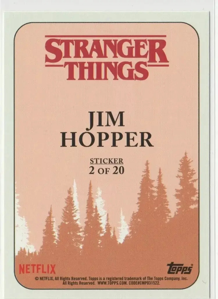 Jim Hopper #2 Character Sticker insert chase 2018 Topps Netflix Stranger Things Season One streaming series trading card David Harbour