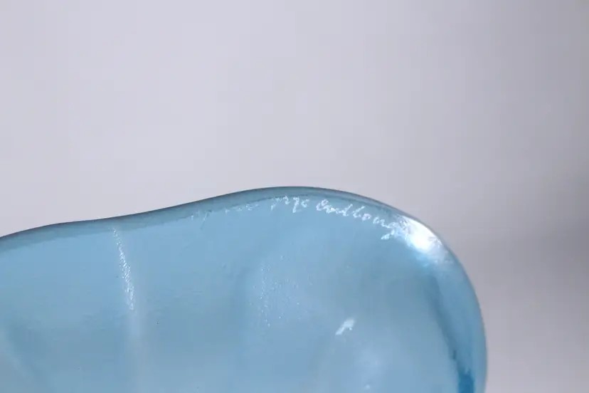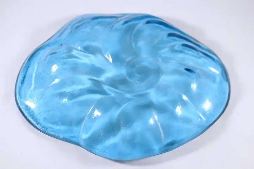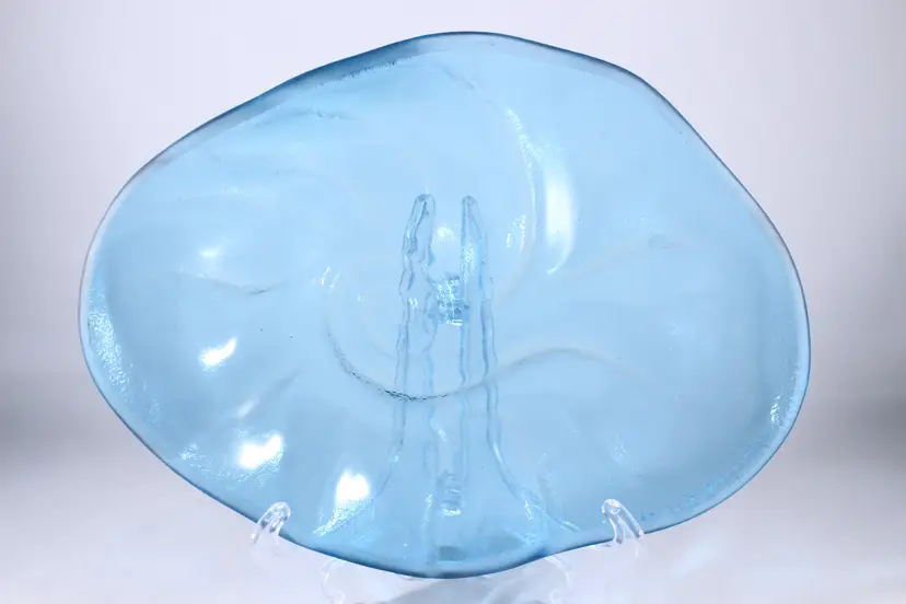 Jim Mccullough Shell Waves Pattern Blue Sandblasted Art Glass Dish - Signed