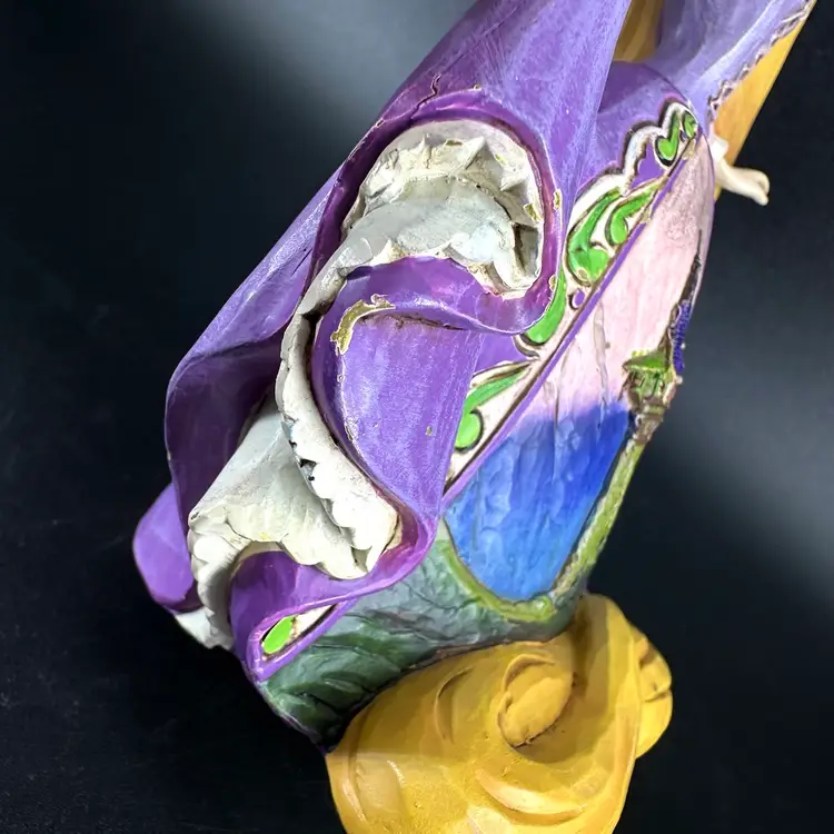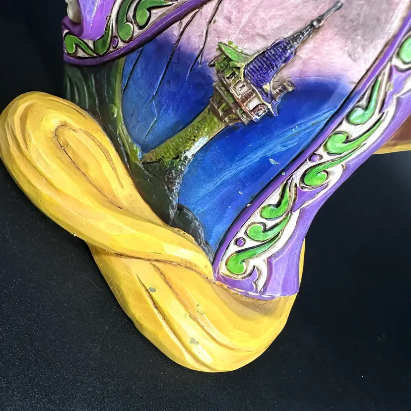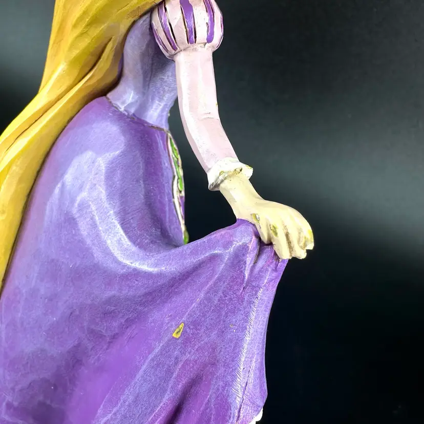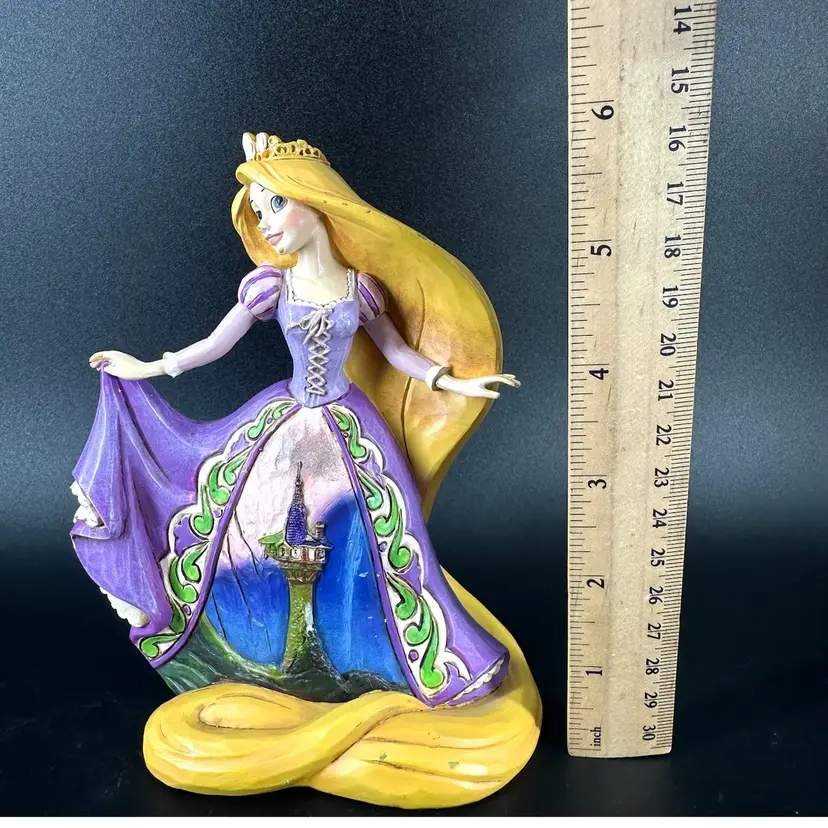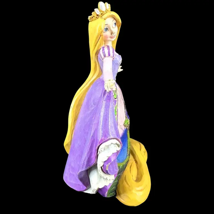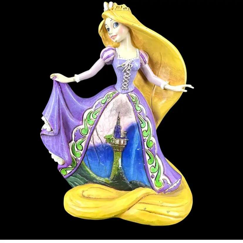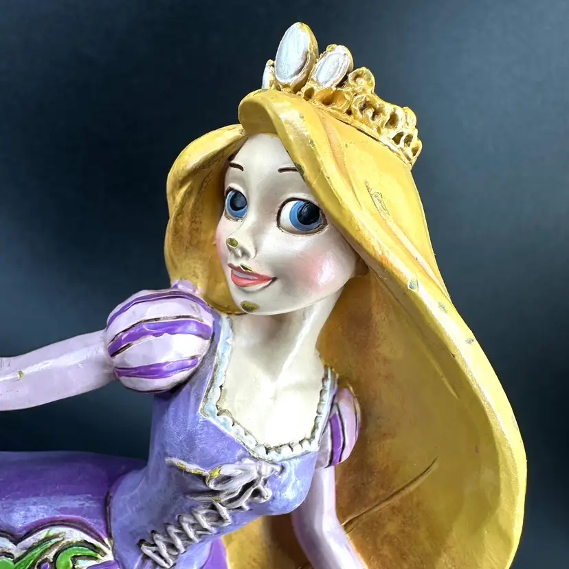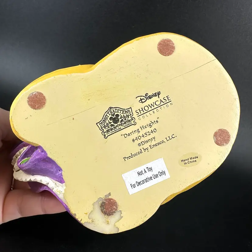 Jim Shore resin figurine, featuring Disney’s “Rapunzel” from the Disney Traditions Showcase Collection. Figurine is titled “Daring Heights” #4045240. Produced by ENESCO, LLC. Figurine has some paint chipping on hair, face, hands, as well as on the bottom of the figurine. See pictures. Figurine measures approximately 6” tall and 4.5” wide. Printed Disney Showcase Collection logo on bottom. Made in China.