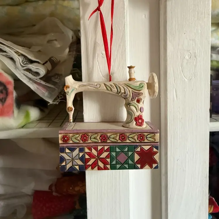 Part of the keepsake quilting collection. Good used condition. No scratches or discoloration. 3 “ by 3 “. Hangs by ribbon