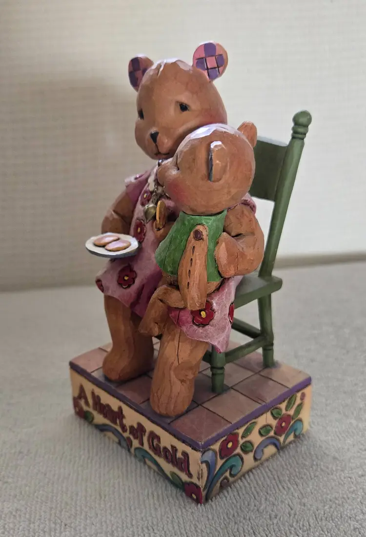 This is the mom and baby bear by Enesco/Jim Shore/Boys Bears Heartwood Creek collection. Item #4009906 from 2007. Made of hand painted stone resin. 5 1/2" tall, 3" wide and 2 1/2" deep. In excellent condition. No box. Great for Jim Shore collectors.