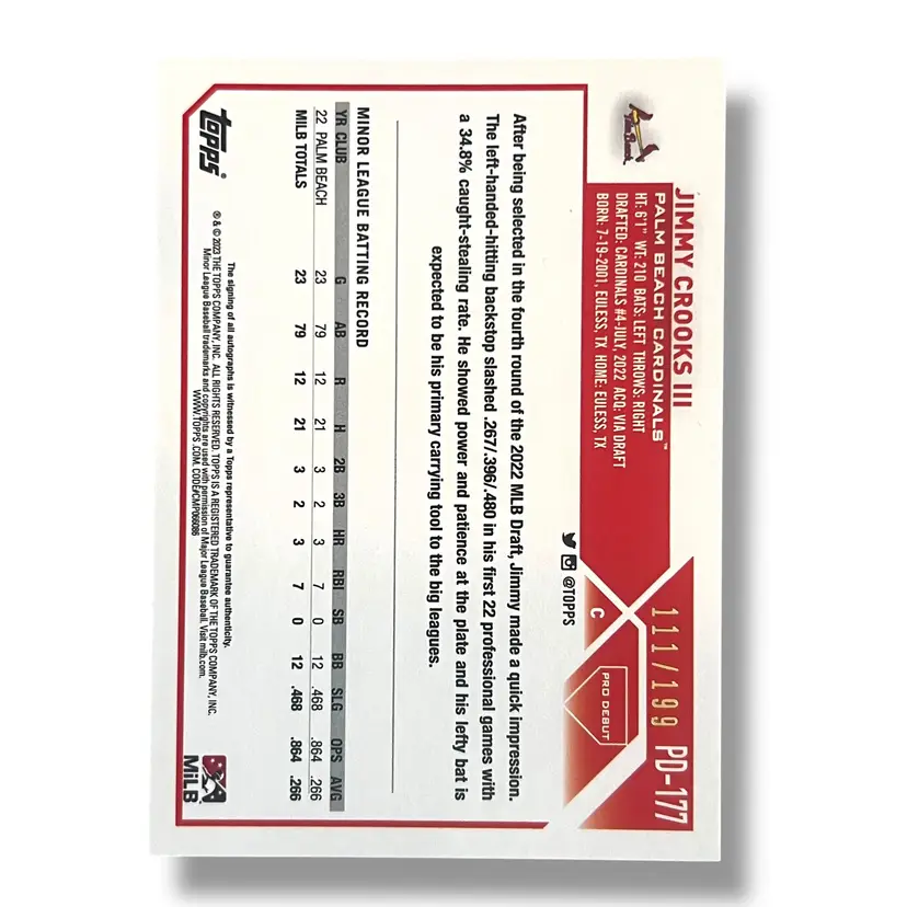 Here We Have a Jimmy Crooks III Auto 2023 Topps Pro Debut Sparkle Foil Auto 111/199