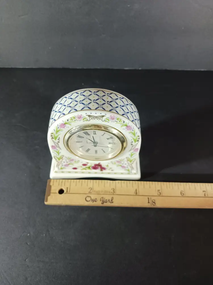 JJI International PORCELAIN DESK CLOCK Vintage Quartz Colorful Floral