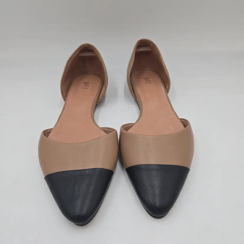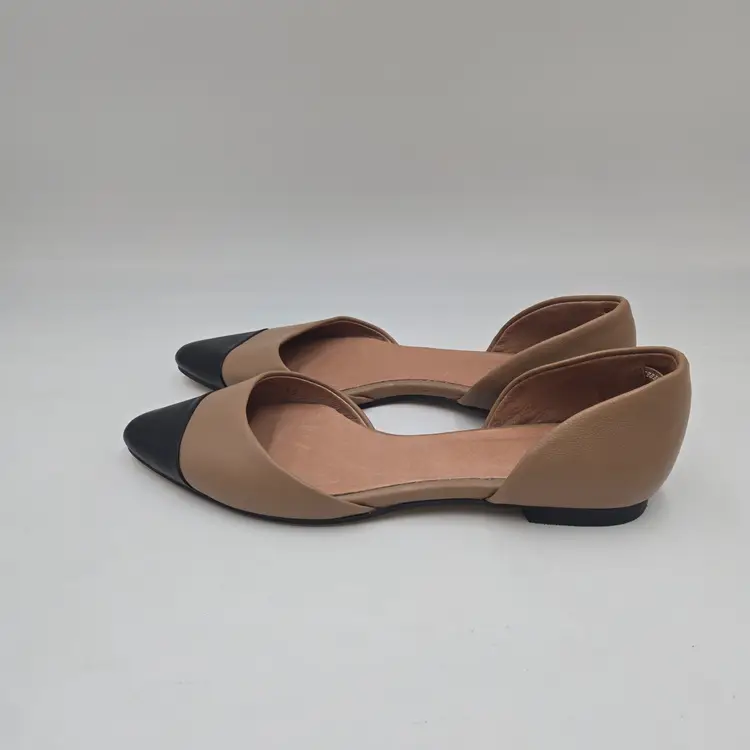 JJill Leather Tan Black D'Orsay Pointed Toe Ballet Flats Slip On 10 M Office New