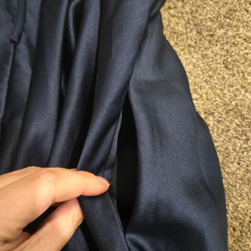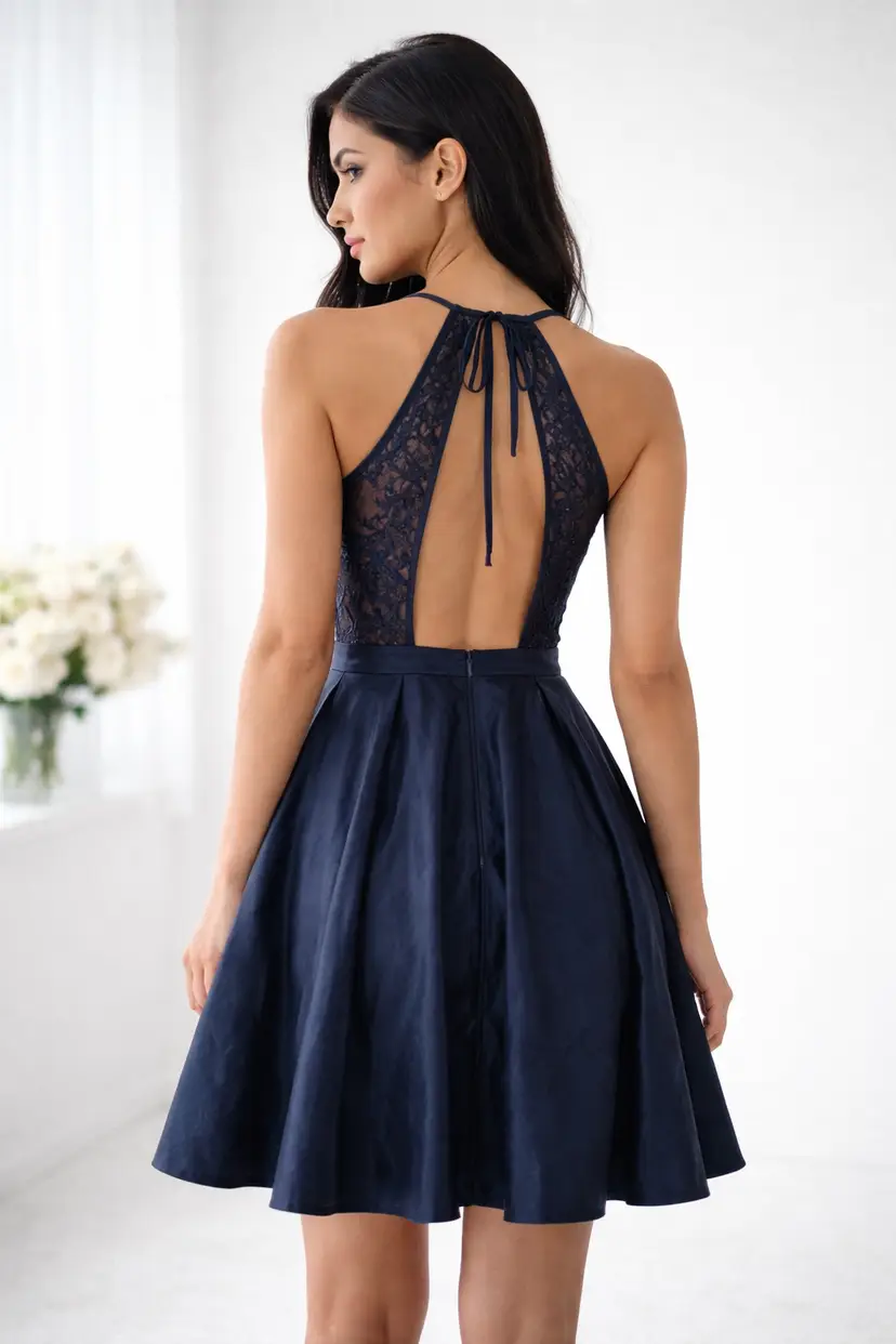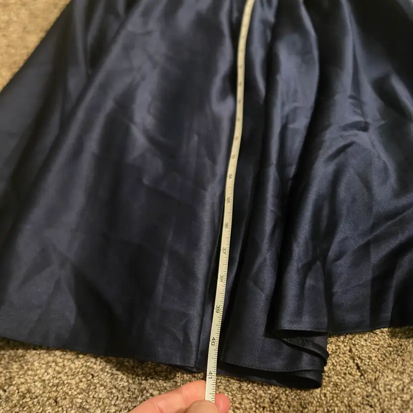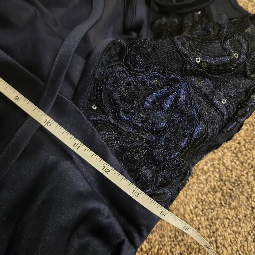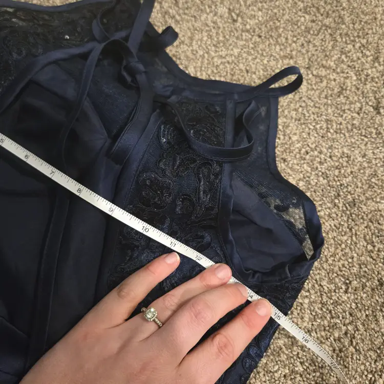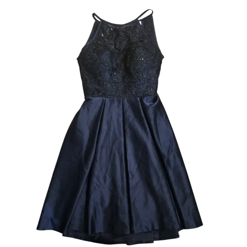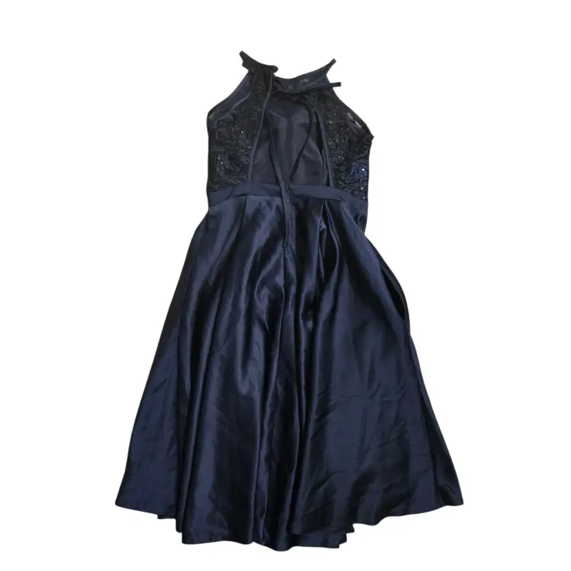 JJs House Navy Blue 8 Lace Fit & Flare Midi Dress Open Back Prom Formal Pockets