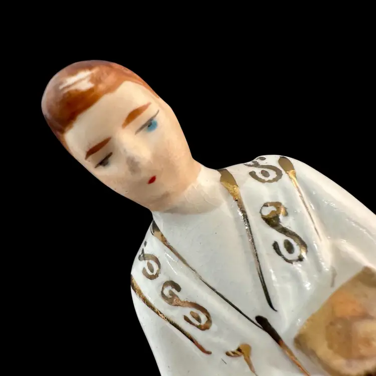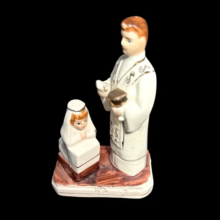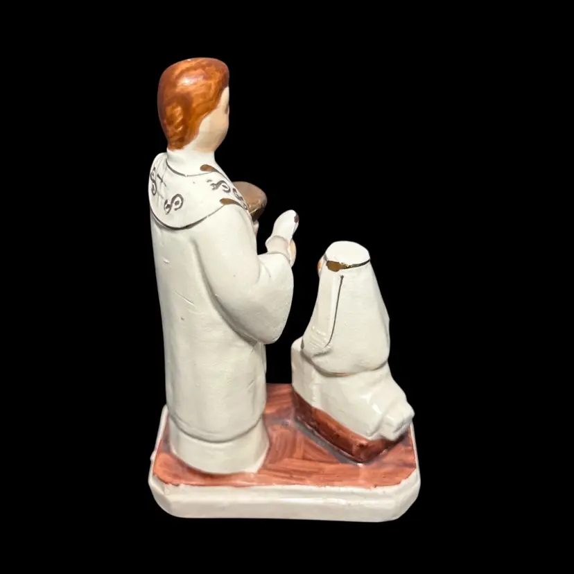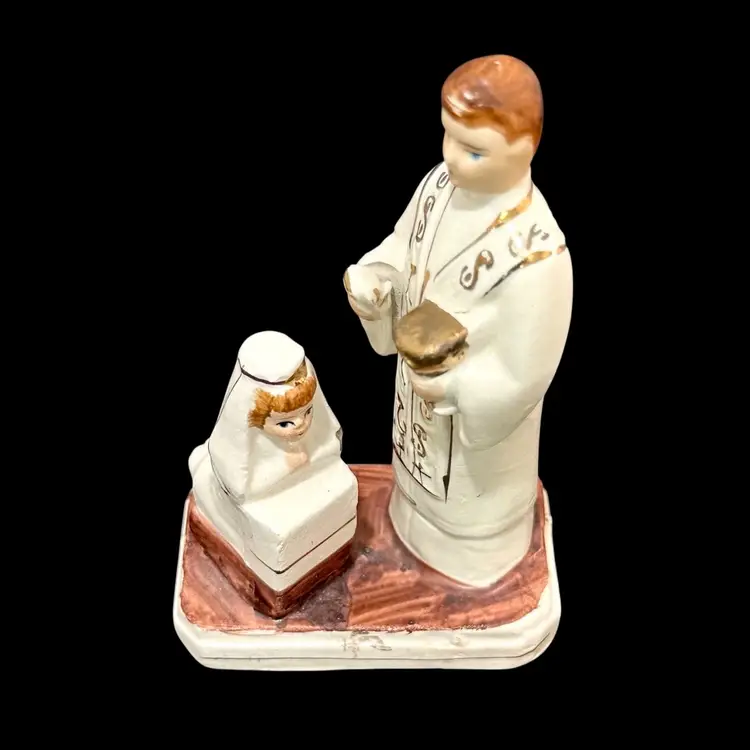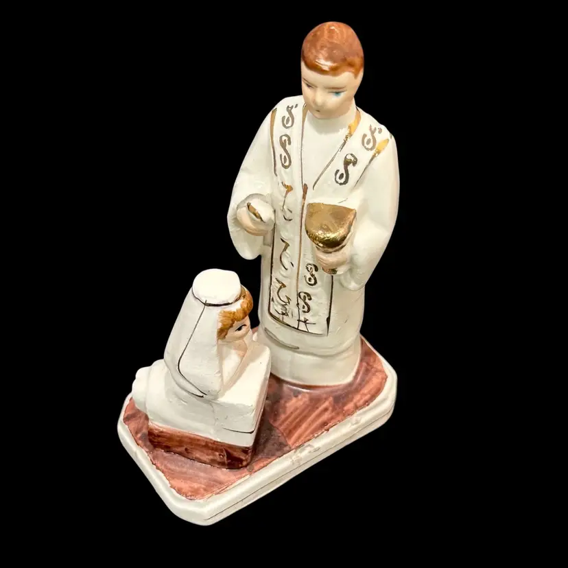 3 x 1.75 x 4 inches tall figurine featuring a priest blessing a young girl. Rub in paint of priest’s hair - manufacturing miss?
