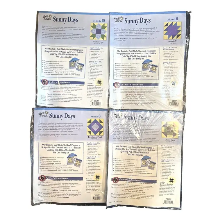 Quilt Block of the Month Sunny Days Months 2-6-8-10 All New in Package Dated 2002
