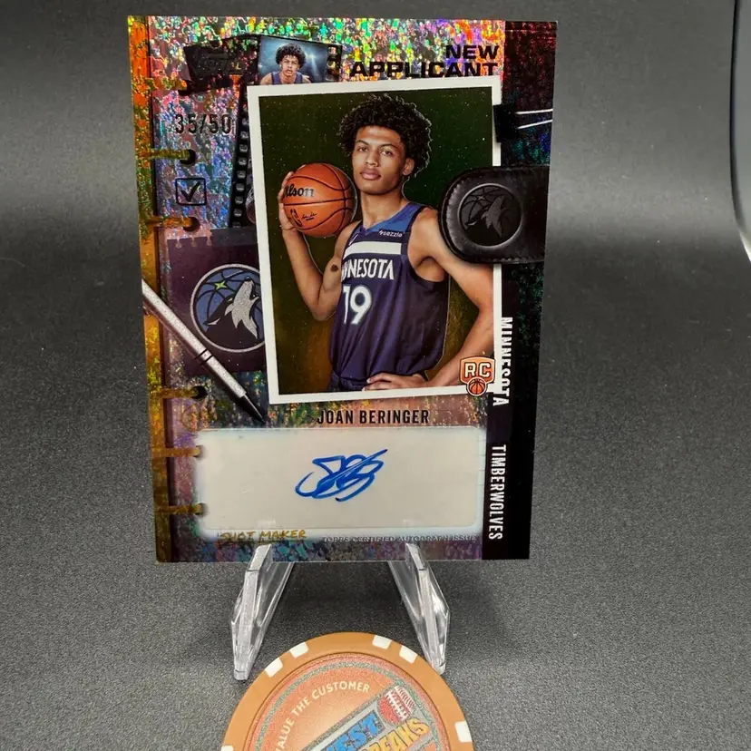 This is a Gold parallel auto of Joan Beringer #35/50 of the Minnesota Timberwolves. 2025-26 Topps NBA. Slight whitening on one corner.
