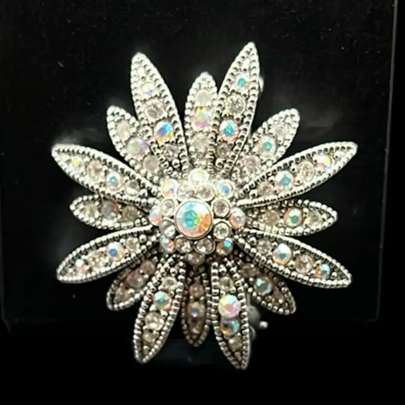 Beautiful sparkly Joan Rivers Brooch made with Swarovski crystals in excellent condition. Measures 1.5” diameter.