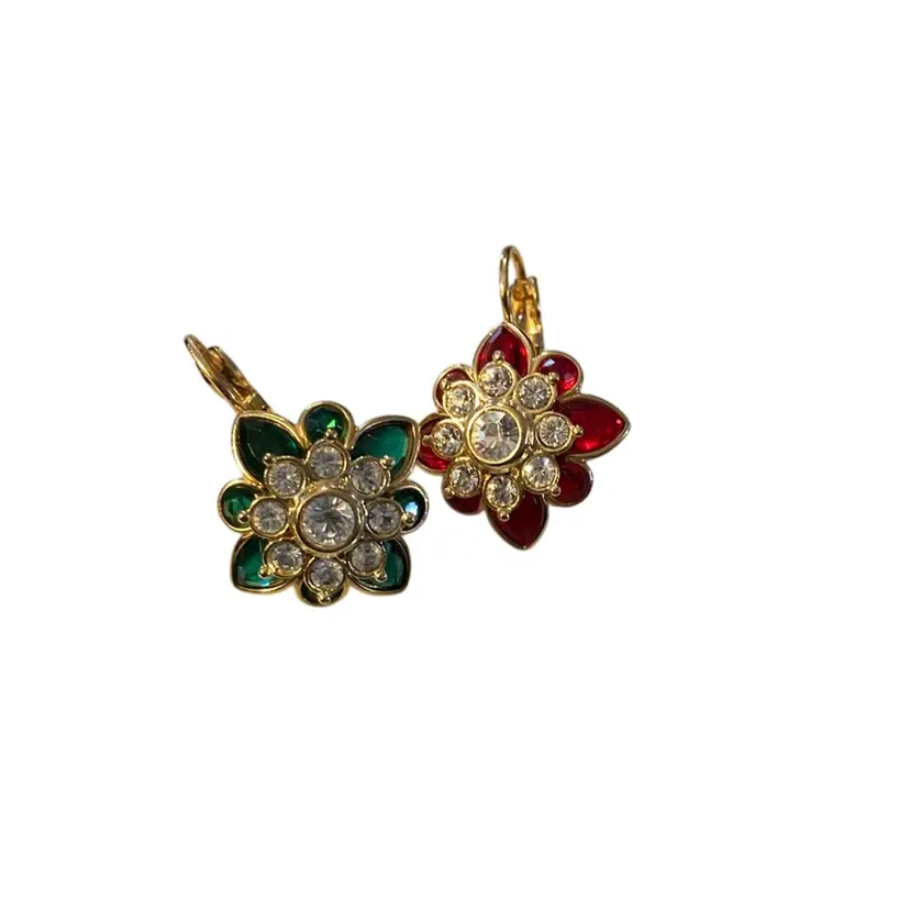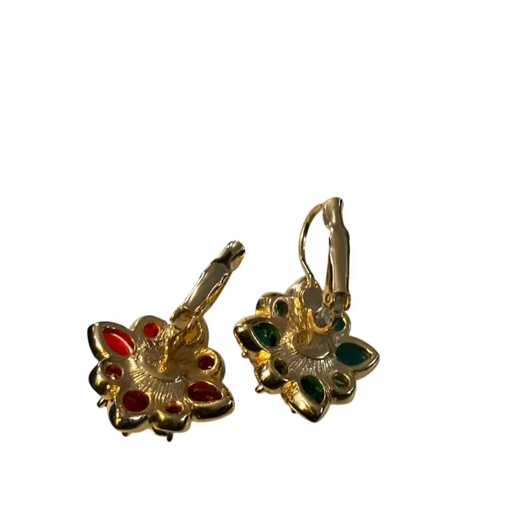 Signed Joan Rives. Gold tone. Has 12 pairs of changeable colors.