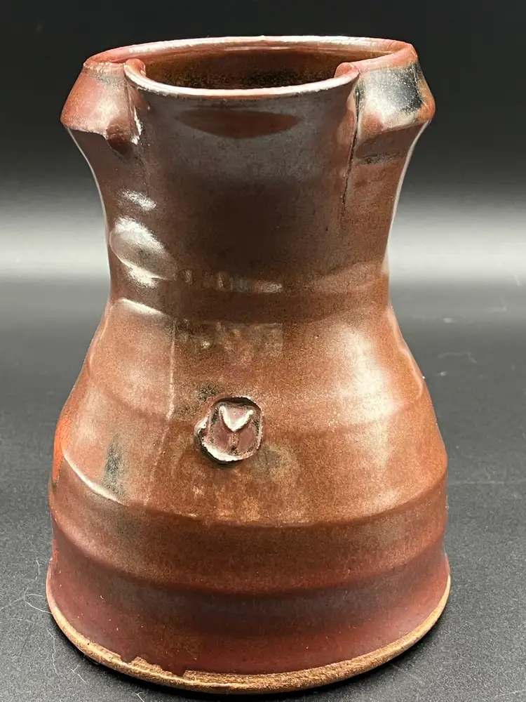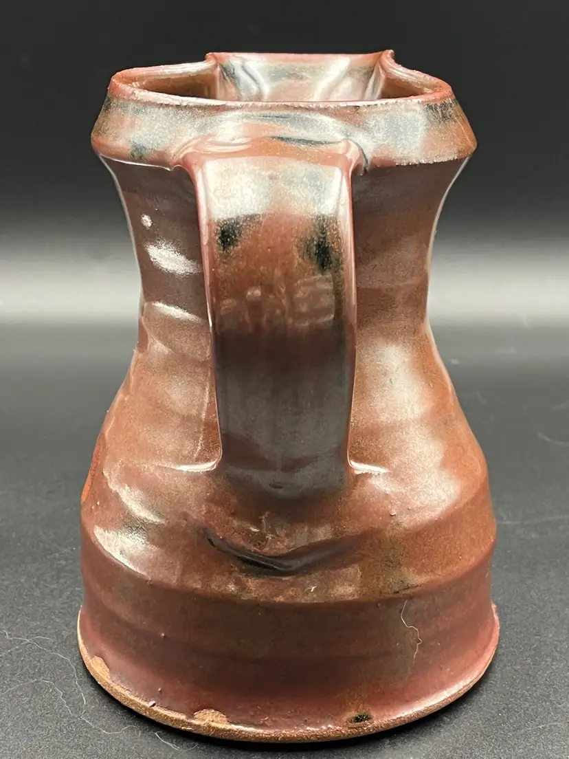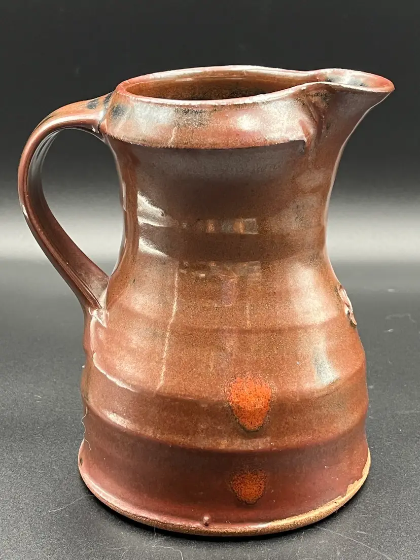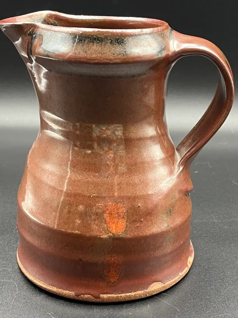 6.75”x 5.25”. This pitcher is made by internationally renowned potter Joe Bennion. His studio is called Horseshoe Mountain Pottery in Spring City Utah. His work is in museums throughout the world.