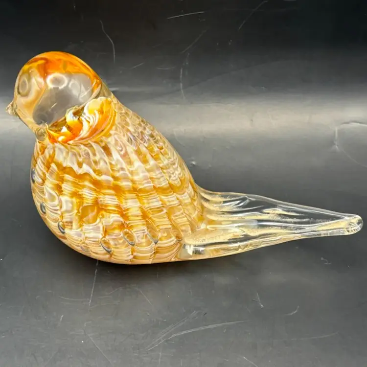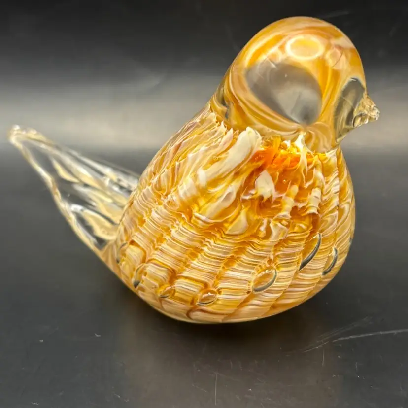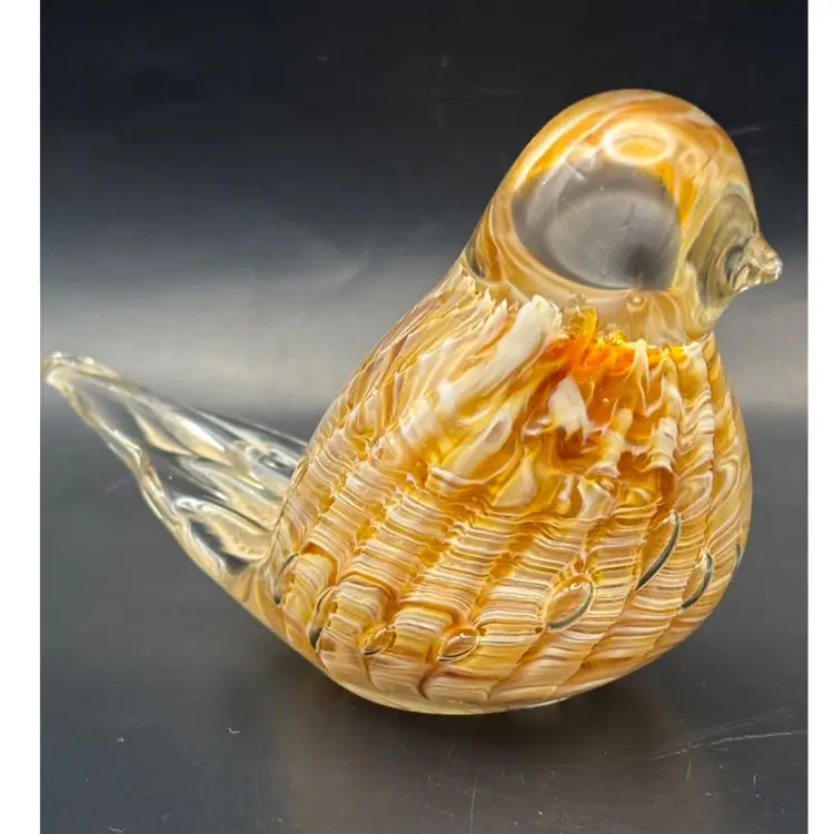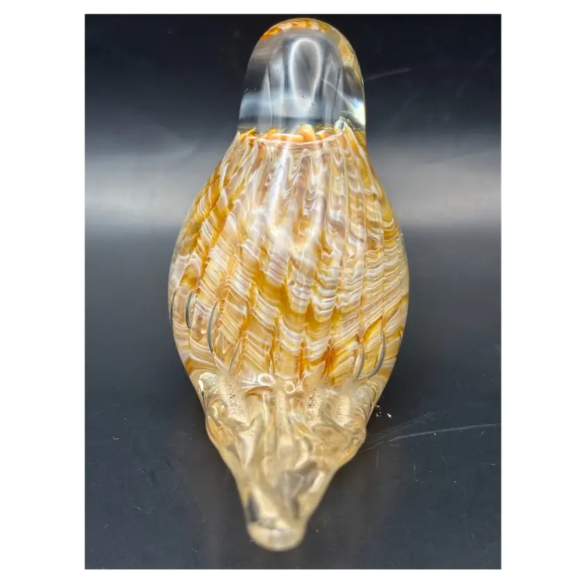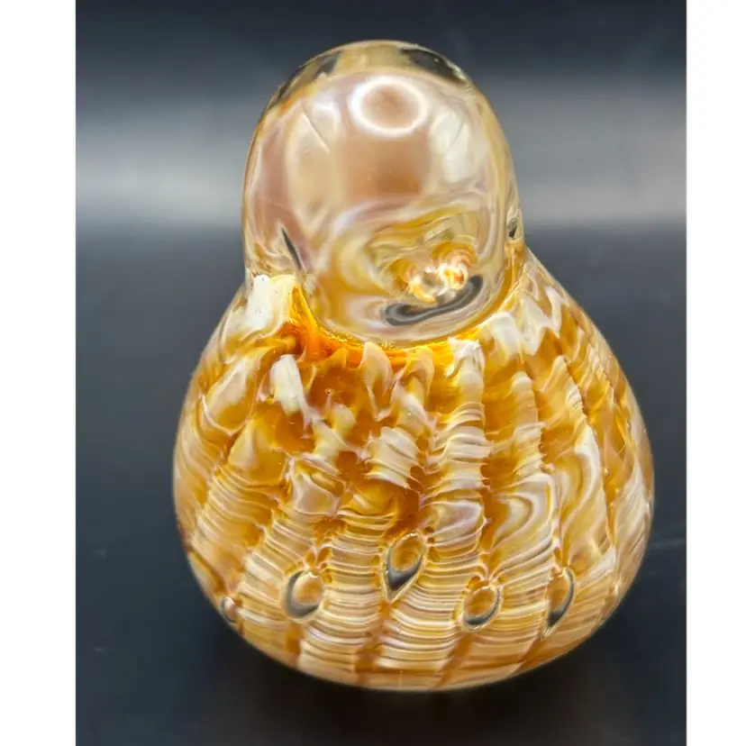 Caramel colored art glass paperweight marked Joe St Clair No chips or cracks 3” tall 4” long