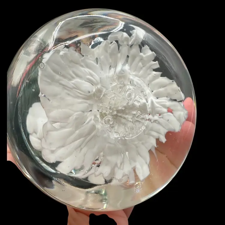 Beautiful, super solid paperweight!! Stamped with makers mark on the bottom. No flaws to note.
