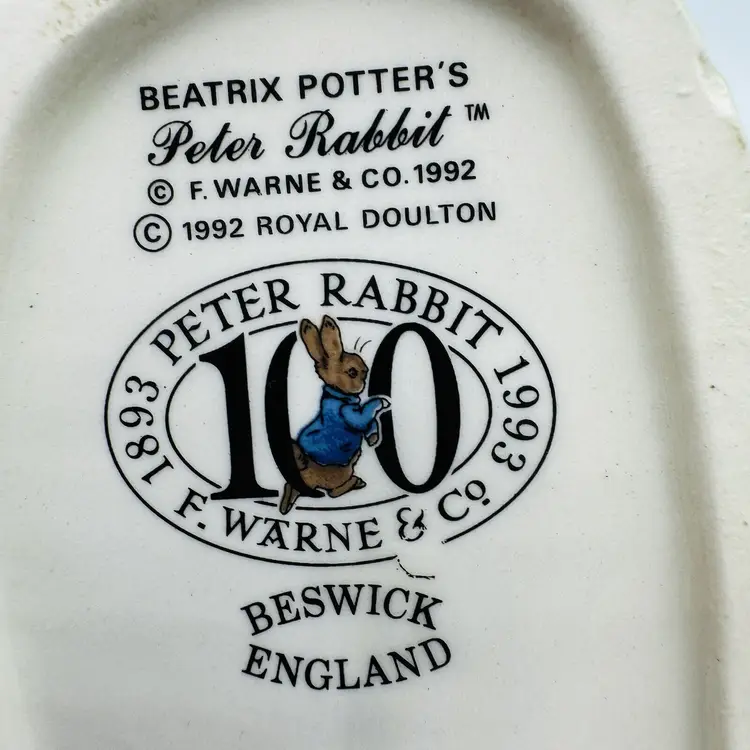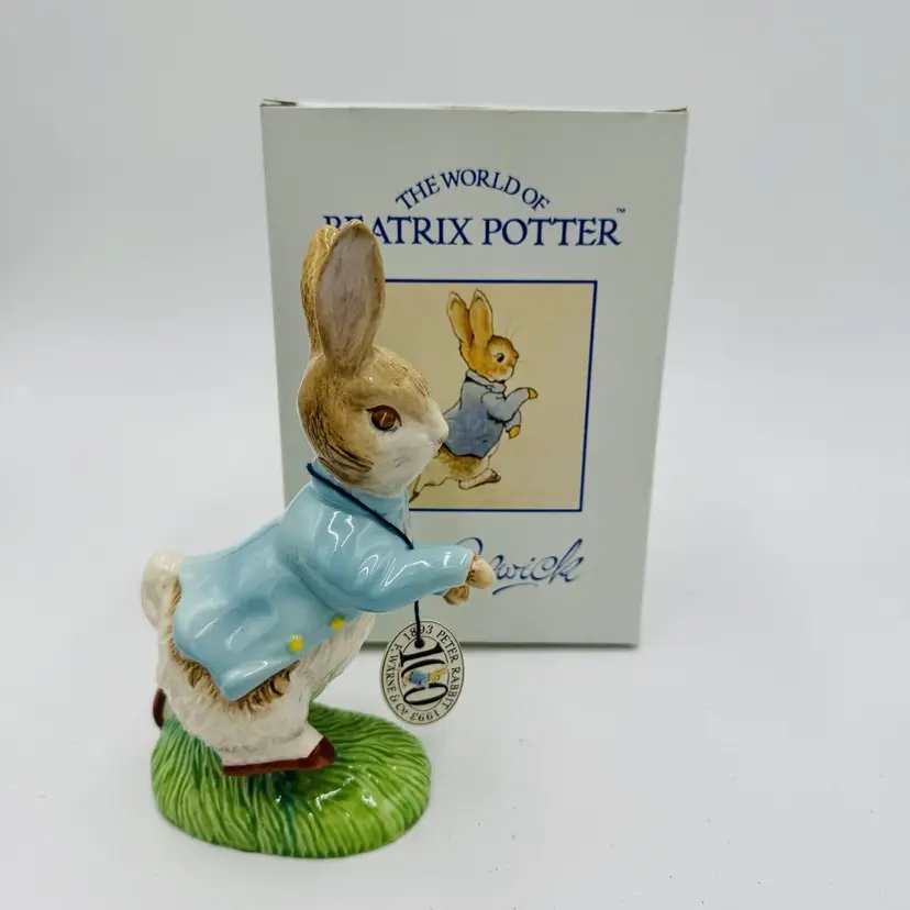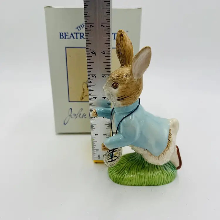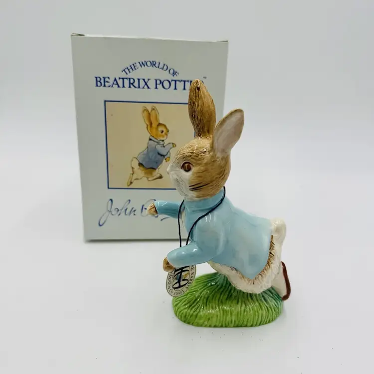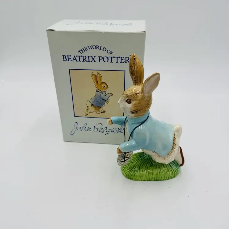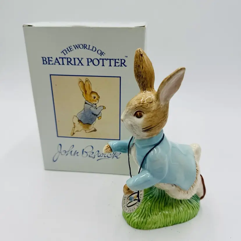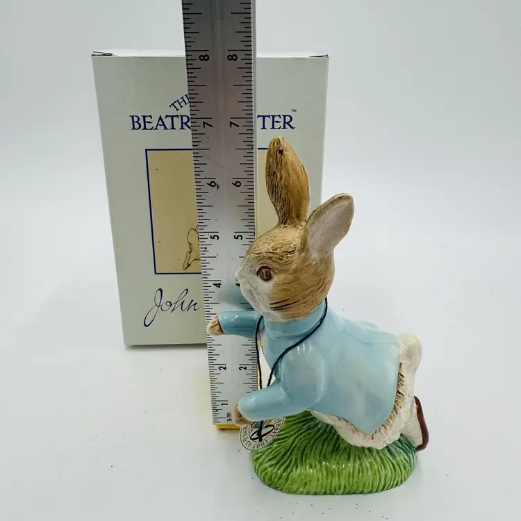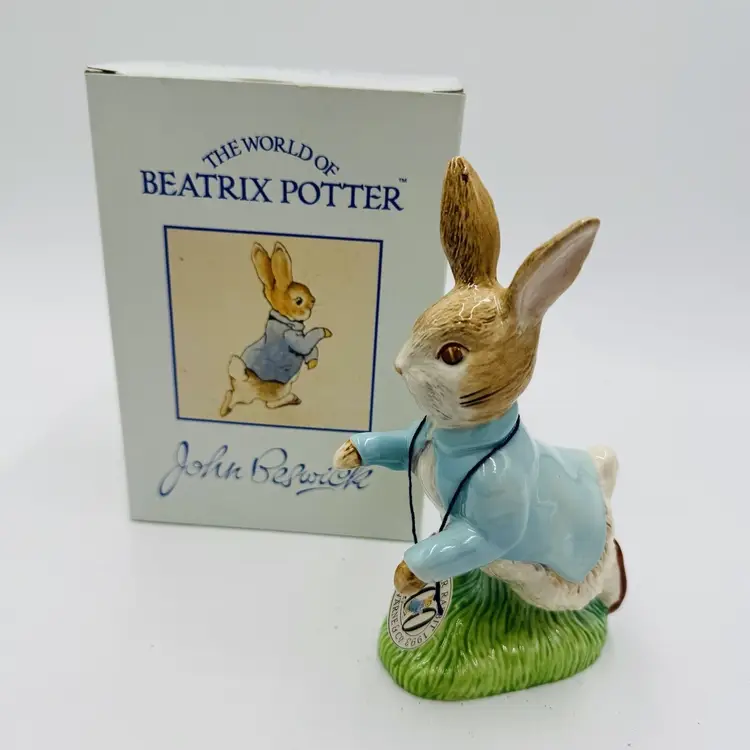 Number in Pack: 1 Features: Boxed Department: Adults Pattern: Abstract Time Period Manufactured: 1992 Item Length: 6.5 in Item Height: 6.5” Subject: Rabbit Collection: Beatrix Potter Occasion: All Occasions Size: Medium Country/Region of Manufacture: United Kingdom Material: Porcelain Year Manufactured: 1992 Character: Peter Rabbit Packaging: Box Artist: John Beswick Finish: Glazed Brand: John Beswick Color: Multicolor Room: Any Room Theme: Animals & Dinosaurs Character Family: Peter Rabbit Type: Figurine Original/Reproduction: Original