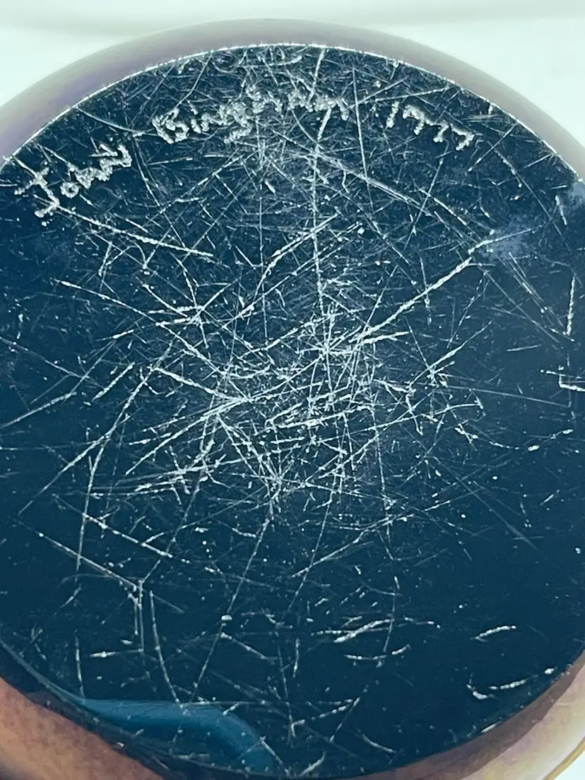Rare old paperweight dated and signed. Please note the wear on the under of the paperweight