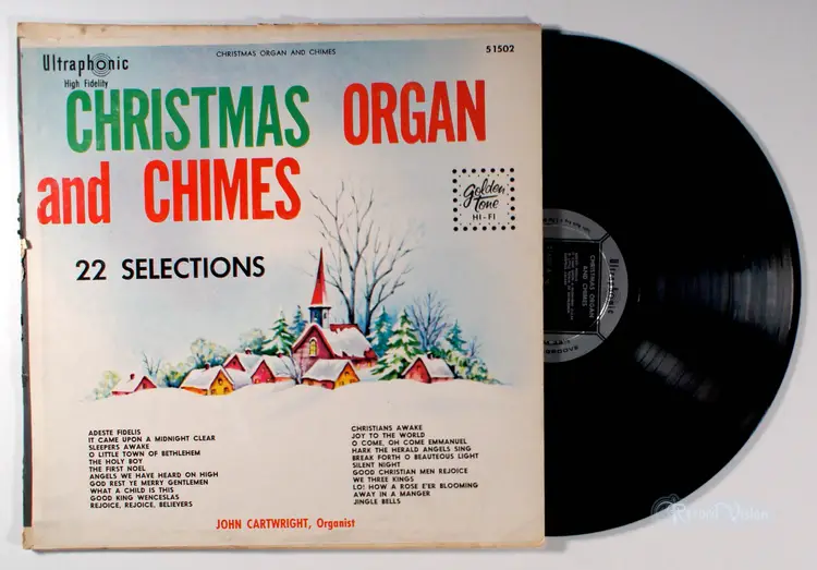 Christmas Organ and Chimes, by John Cartwright, is a collection of traditional Christmas carols performed on pipe organ with chimes, capturing the festive spirit with a nostalgic, reverent sound. Released during the mid-20th century, it reflects the era's popularity of organ and chime arrangements for holiday music, often used to evoke a warm, traditional atmosphere in homes and churches. The album features well-known carols like Silent Night and O Come, All Ye Faithful, showcasing Cartwright's skill in creating rich, resonant interpretations. While no specific hit singles are documented from this album, its tracks contributed to the broader trend of instrumental Christmas albums that were commercially successful during the holiday season. The historical significance lies in its representation of mid-20th-century holiday music trends, emphasizing instrumental arrangements that became iconic in American households.