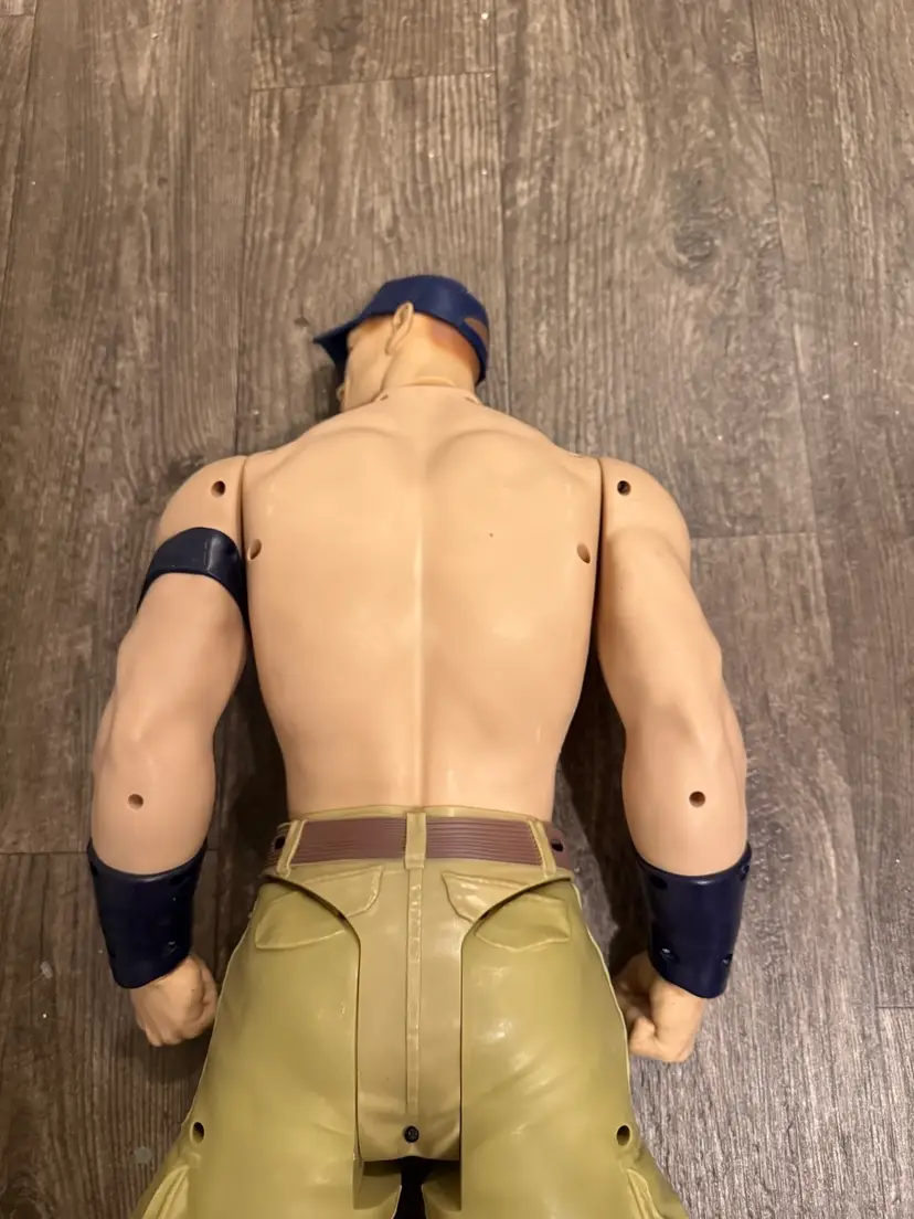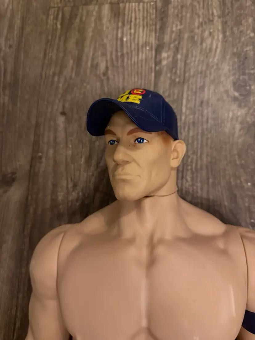 This WWE Giant Action Figure featuring John Cena (now retired) stands at 31" tall and is made of plastic material. Produced by Wicked Cool Toys in 2014, this action figure is part of the WWE franchise, specifically based on the popular wrestling TV show. With multicolor detailing and an original design, this collectible item is a must-have for fans of John Cena and WWE wrestling. Displaying intricate details and staying true to the character's persona, this action figure captures the essence of the wrestling superstar. does have some wear from aging but in great condition.