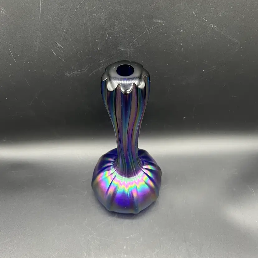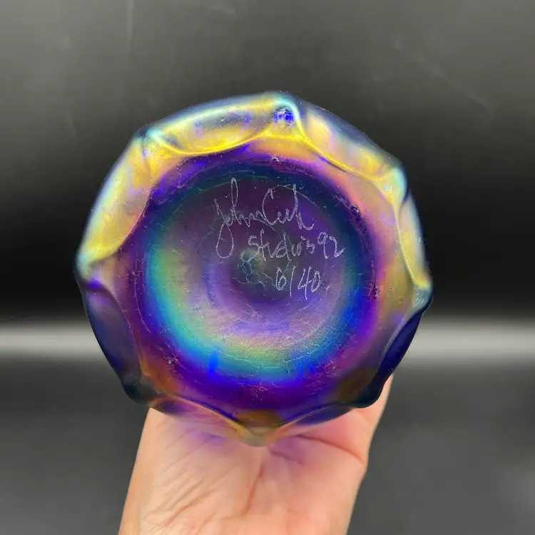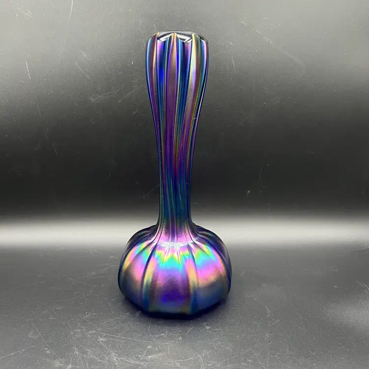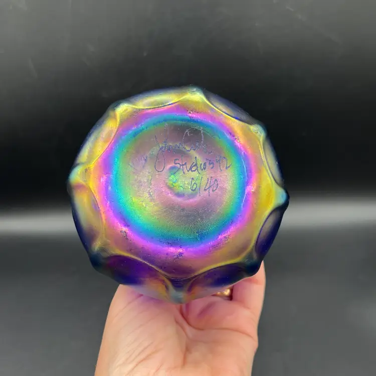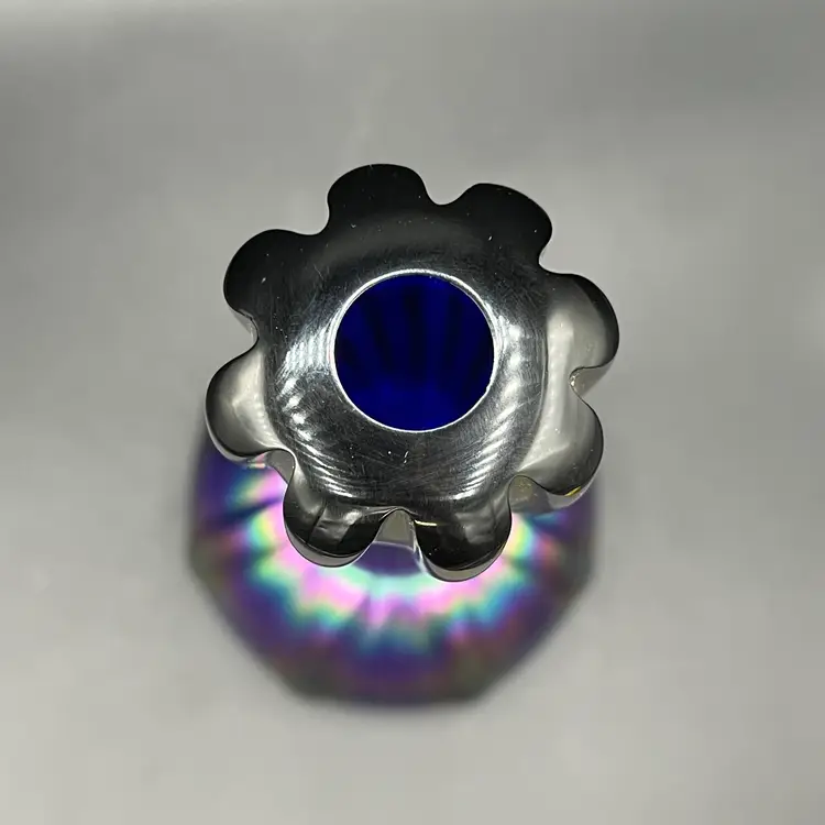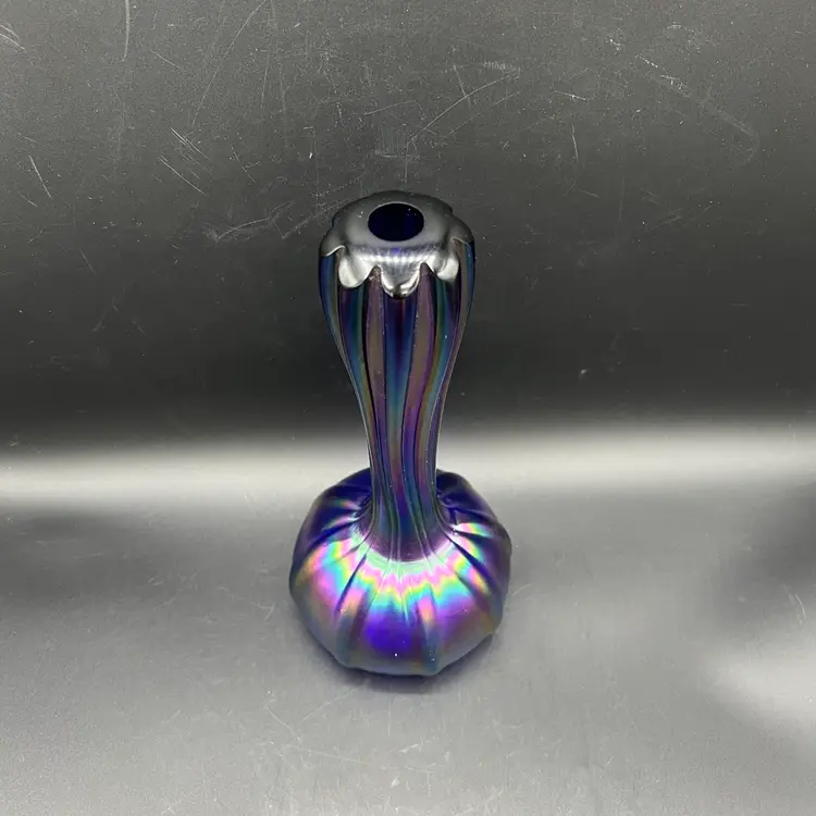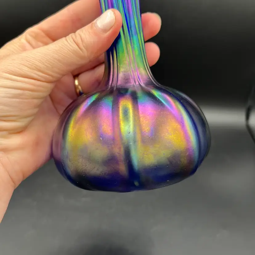 John Cook Iridescent Cobalt Blue Twist Art Glass Bud Vase 92' ~ 6th of 40 Signed