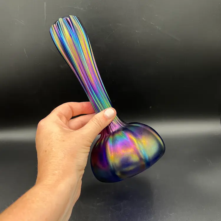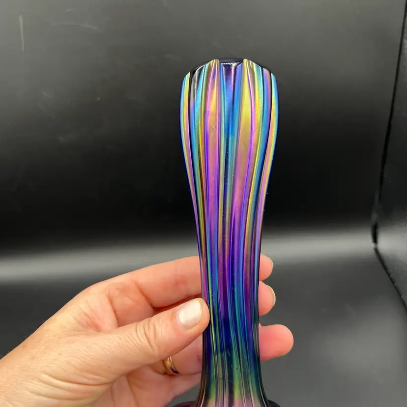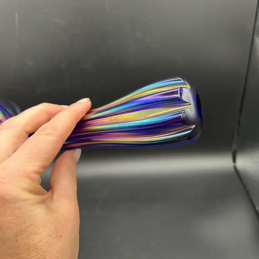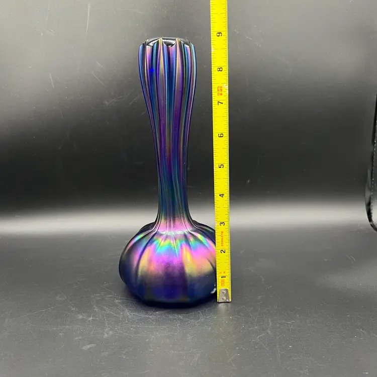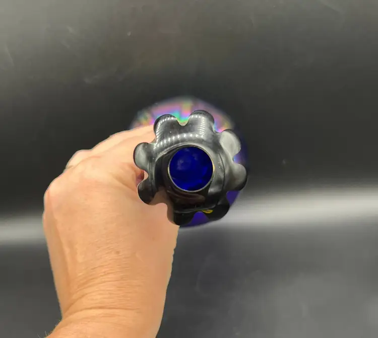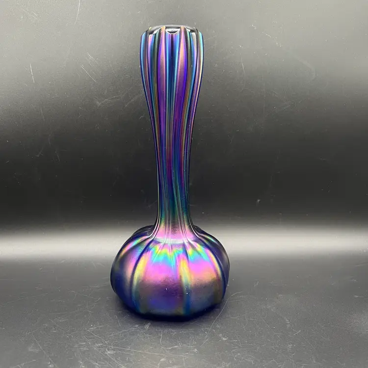 John Cook Iridescent Cobalt Blue Twist Art Glass Bud Vase 92' ~ 6th of 40 Signed
