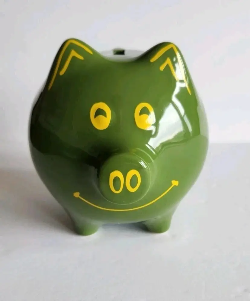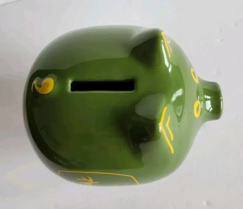 The John Deere Piggy Bank is a collectible item that features the iconic branding of John Deere, known for its agriculture-themed advertising. This pre-owned piggy bank is in very good condition and comes with a plug to securely store coins. Perfect for fans of John Deere or collectors of unique advertising memorabilia, this piggy bank adds a touch of nostalgia and charm to any space.