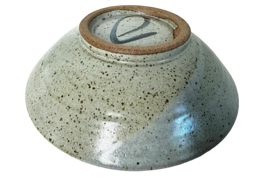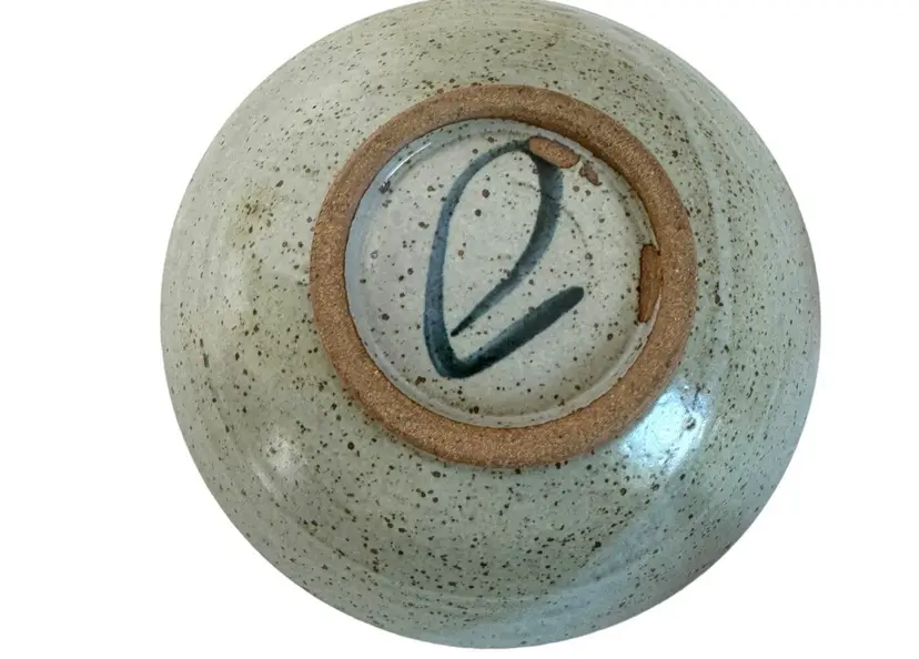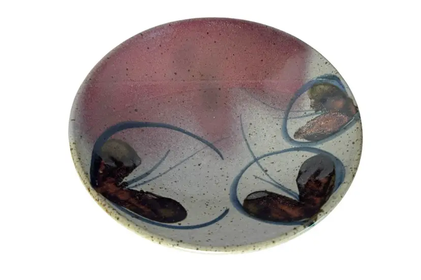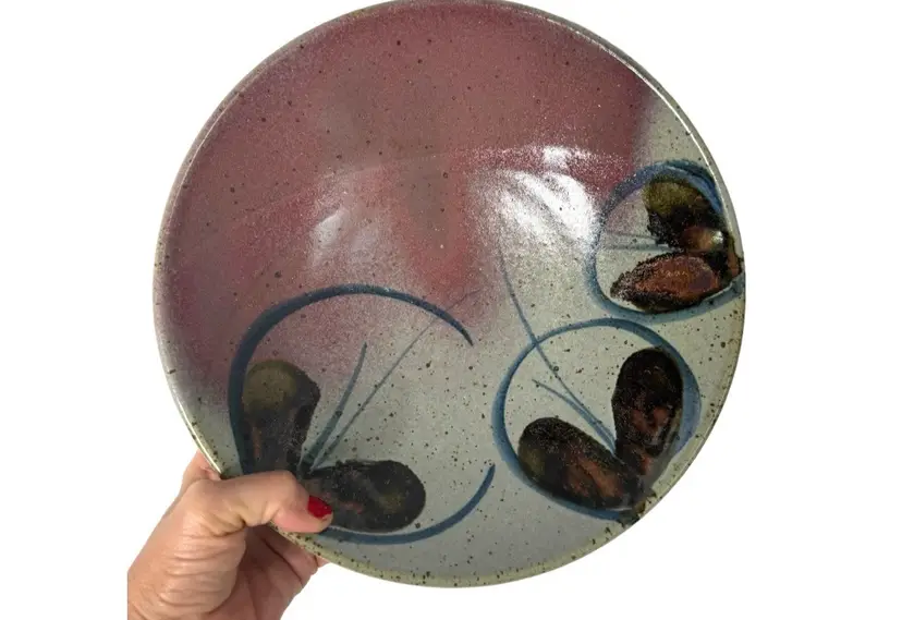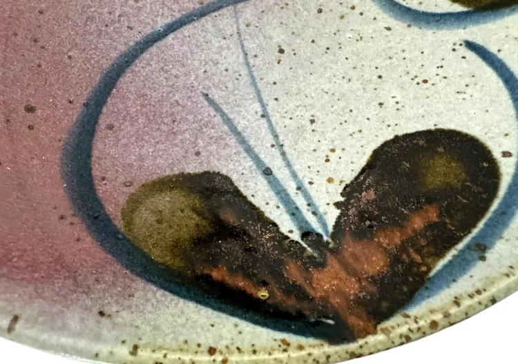 John Freimarck artist signed art pottery bowl. Glazed with pinks, blues and natural earth tones and painted with butterfly motif. no chips or cracks