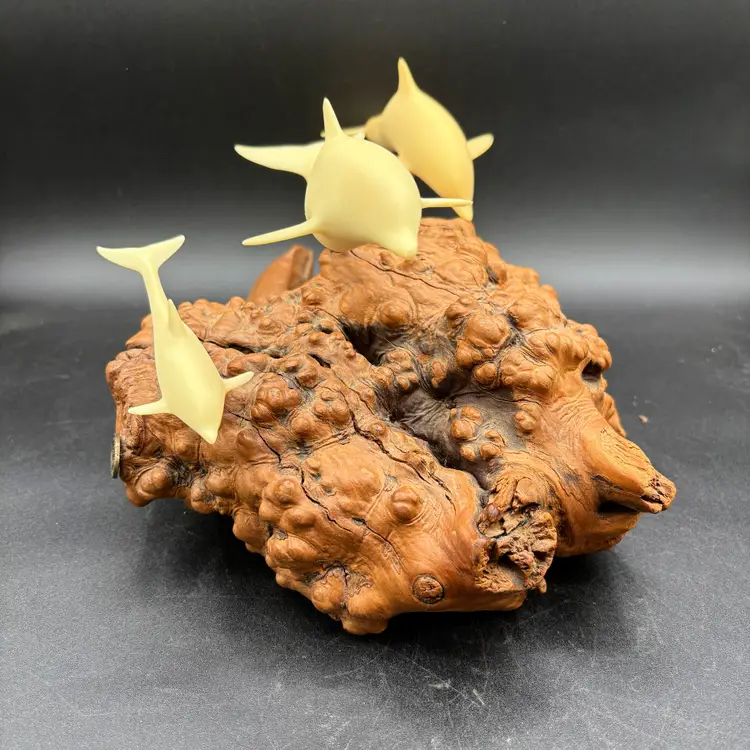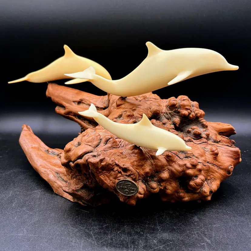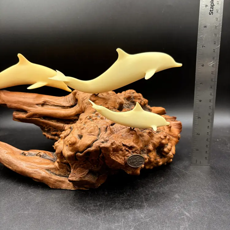 This gorgeous cottagecore/farmhouse chic vintage decorative John Perry dolphin driftwood sculpture would make a lovely addition to any collection or the perfect gift for the favorite collector in your life! The item for purchase is in excellent pre-owned condition and shows no/minimal signs of use or wear. The item listed is damage free and has no chips, cracks, stains or deep scratching.