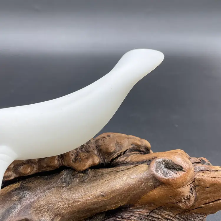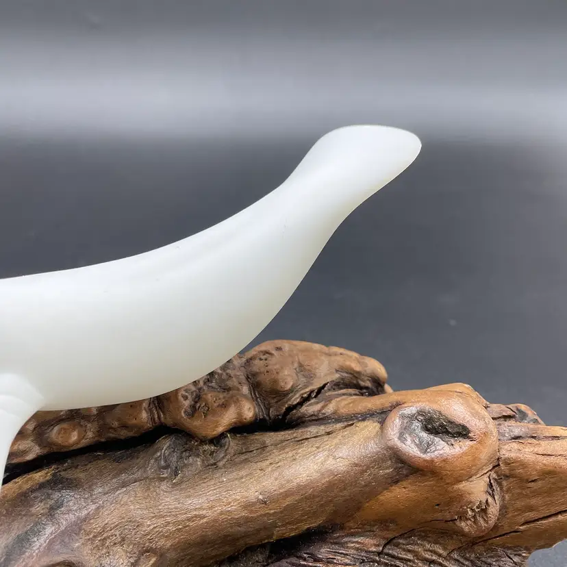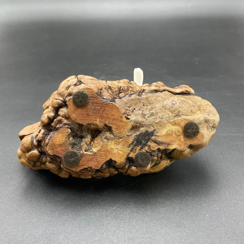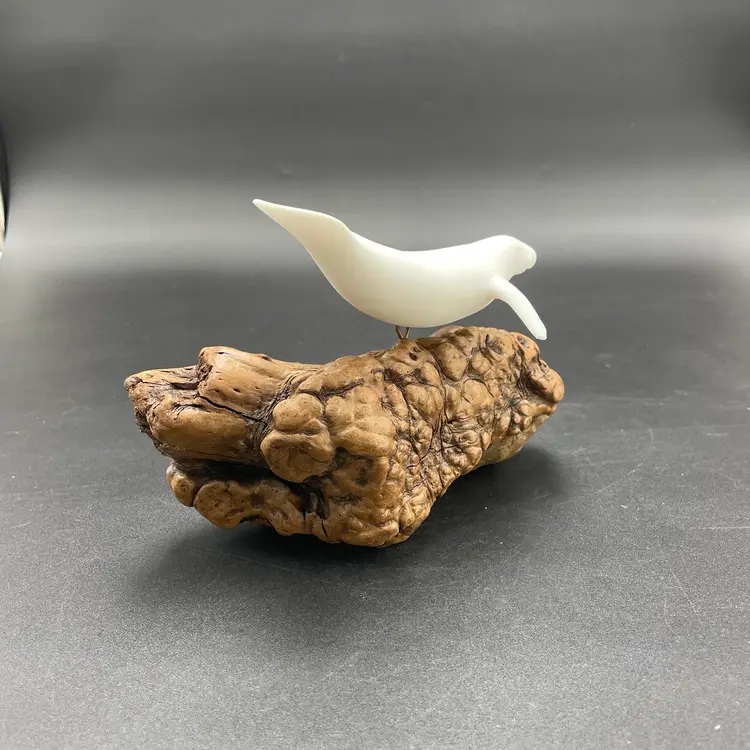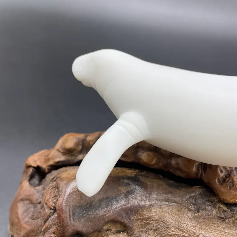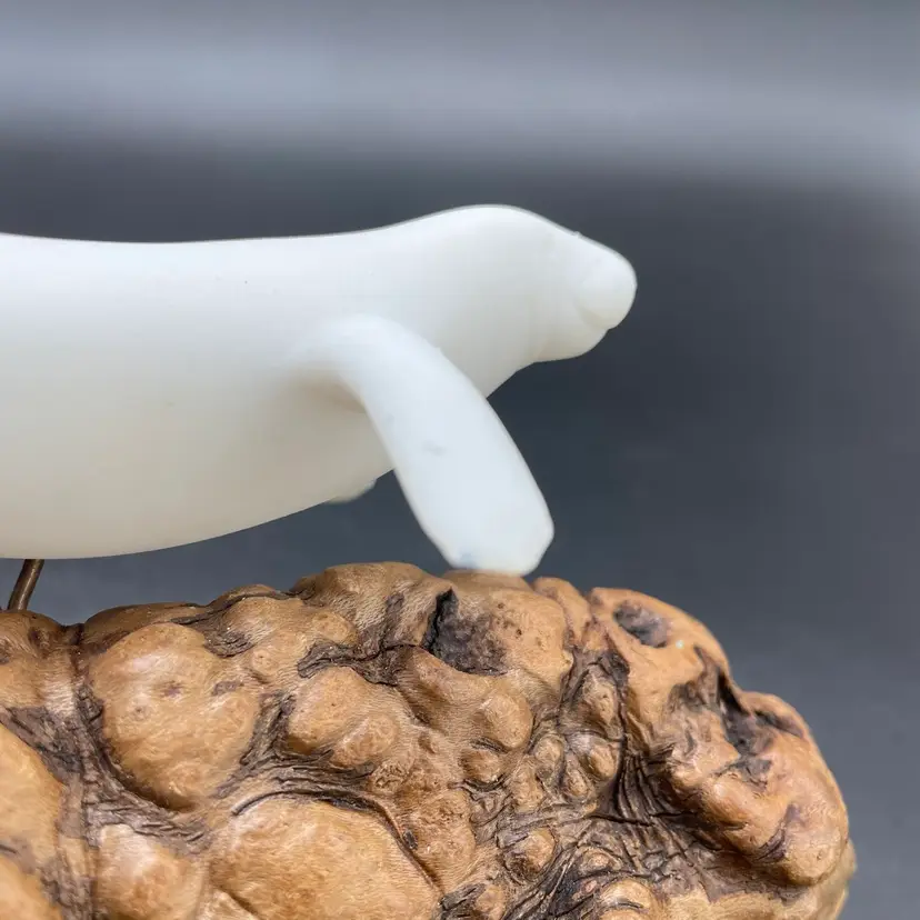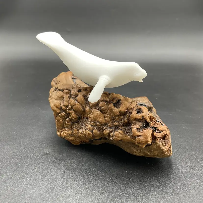 This is a vintage manatee on burl wood sculpture by John Perry. Measures approximately 5" tall x 8" long. There is minimal scuffing on the back side as shown in pictures. No other major flaws.