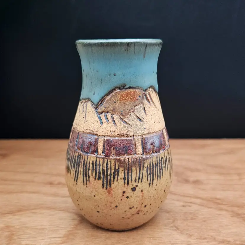 In 2000, John Winterhawk of the Muscogee-Creek Tribe, founded Winterhawk Pottery. His creations were inspired by the artwork found in Southeastern Native American burial and temple mounds. He has since retired, making his pieces harder to find.