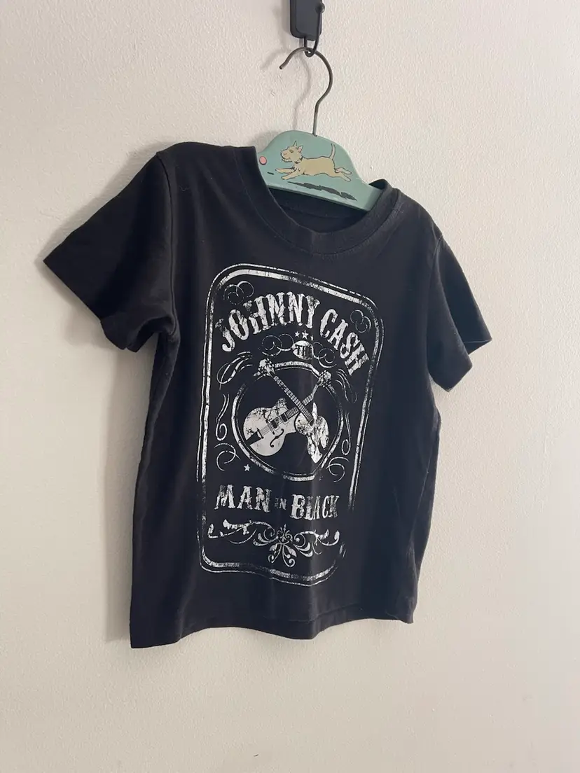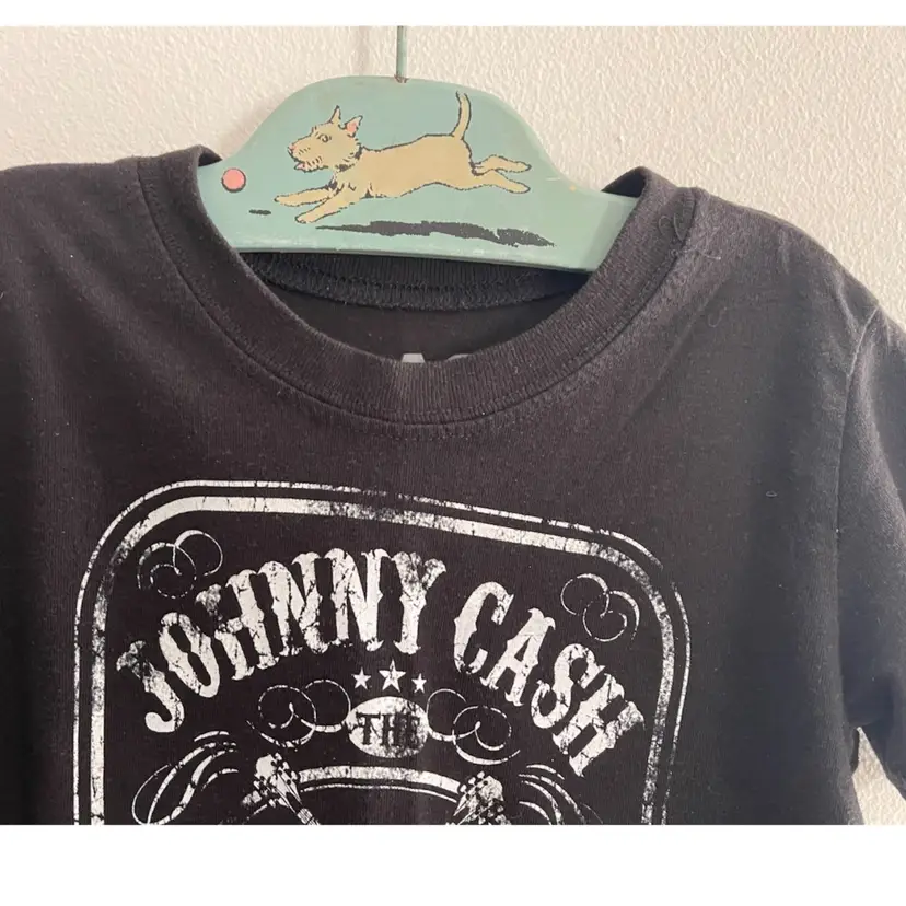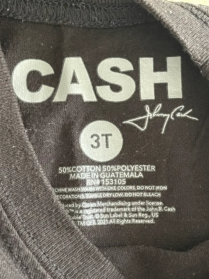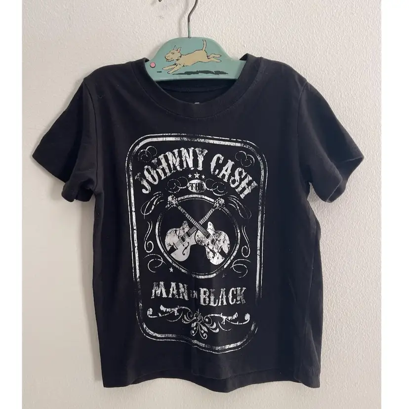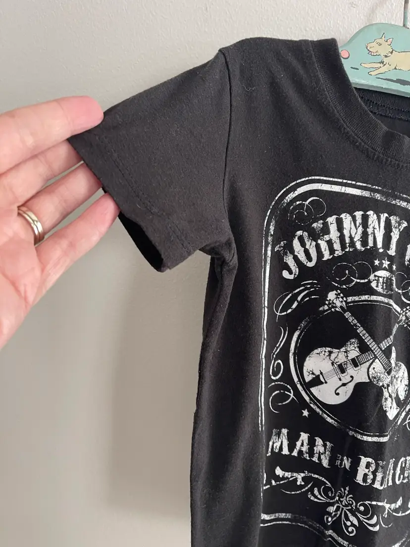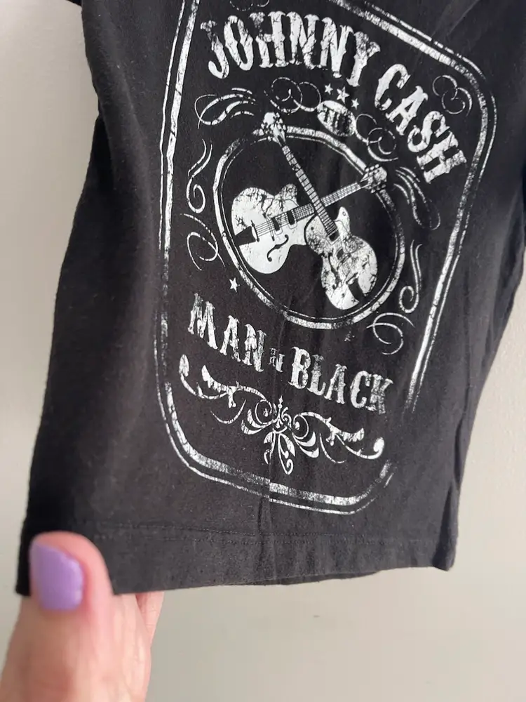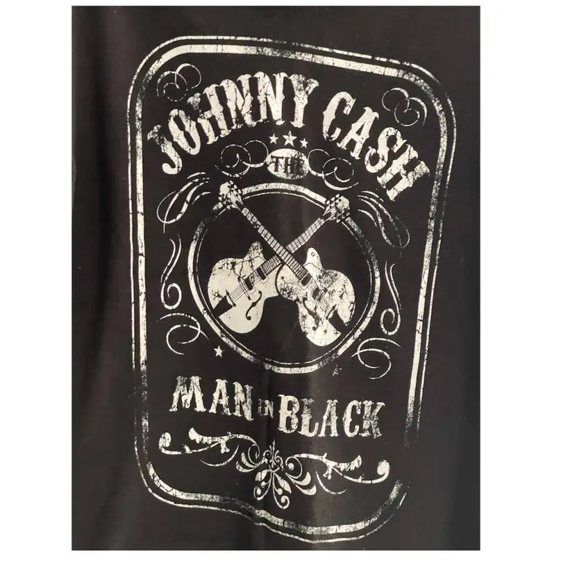 Johnny Cash Tshirt Man in Black Officially Licensed and Branded Black 3T Graphic Tee with Full Front Design 50 Cotton/50 Polyester Distressed with some Wash Wear