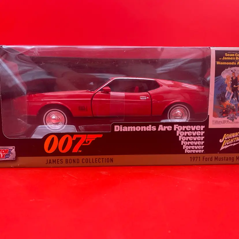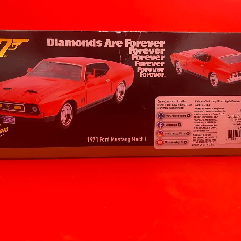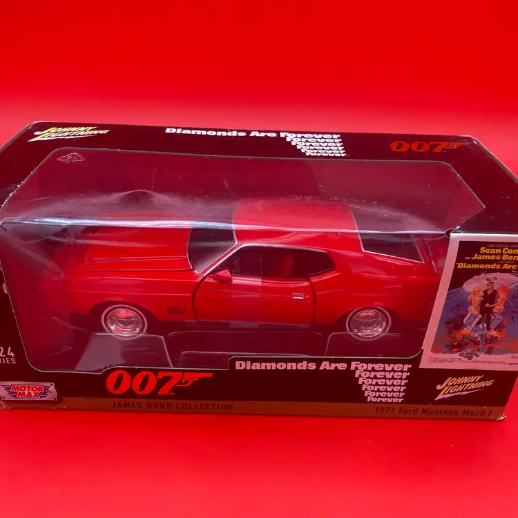 You are purchasing one 007 Diamonds Are Forever... Red 1971 Ford Mustang Mach 1 1:24 Scale Diecast Car by Johnny Lightning with Motor Max and their 2024 James Bond Collection. This car is new and in in its original packaging.