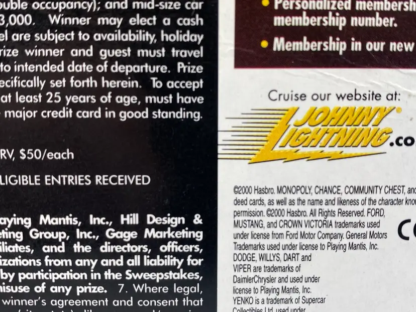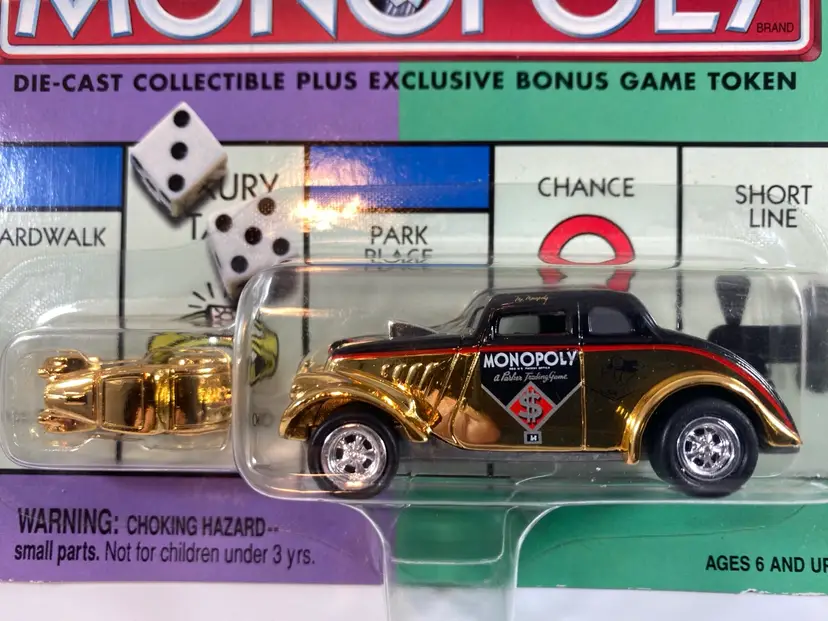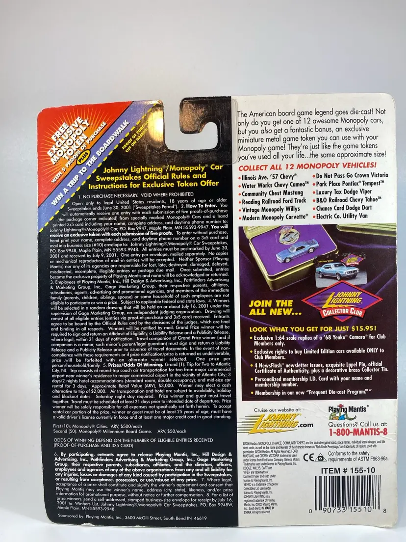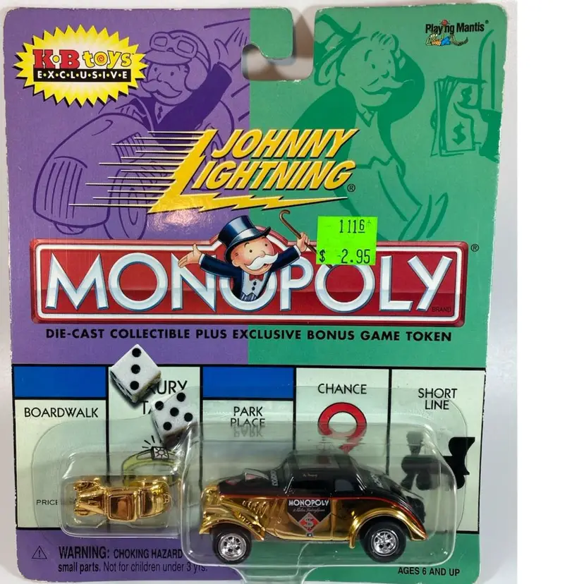 Johnny Lightning 2000 Monopoly KB Toys Exclusive Diecast Car with Game Token. Card is in great shape for its age. Original price tag is still on card.
