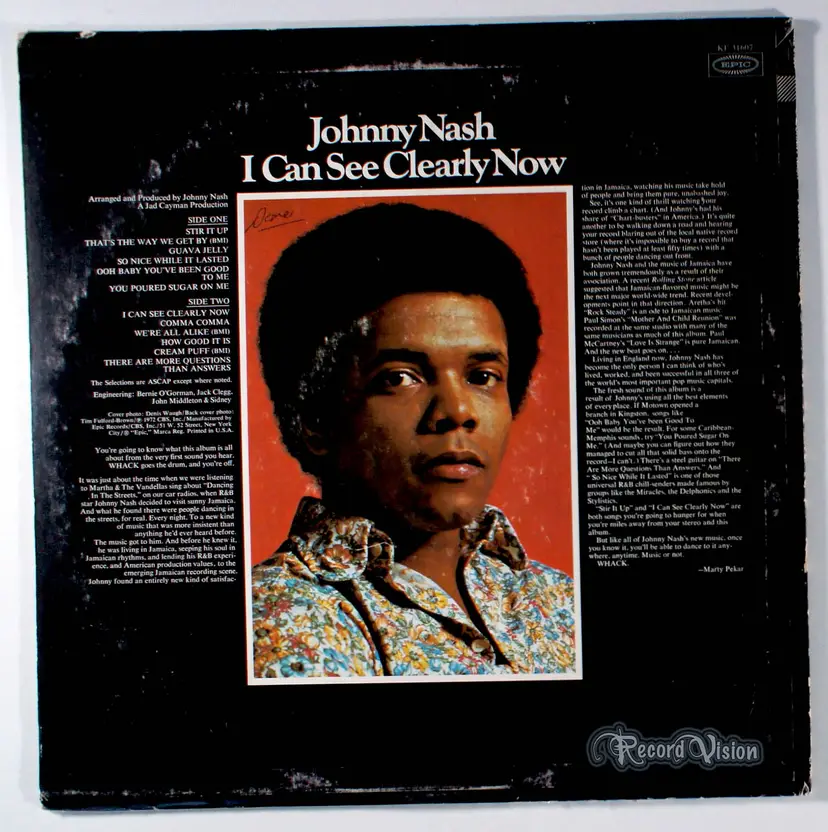 I Can See Clearly Now, by Johnny Nash, included two of his biggest hit singles, the title track (I Can See Clearly Now) and Stir It Up. The song I Can See Clearly Now hit No. 1 on the Billboard Hot 100 on November 4, 1972. Nash's backing band for the album was the Jamaican reggae group Fabulous Five Inc..
