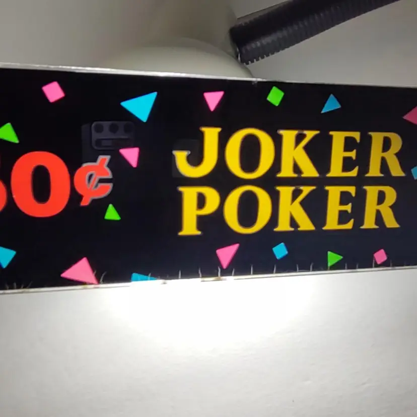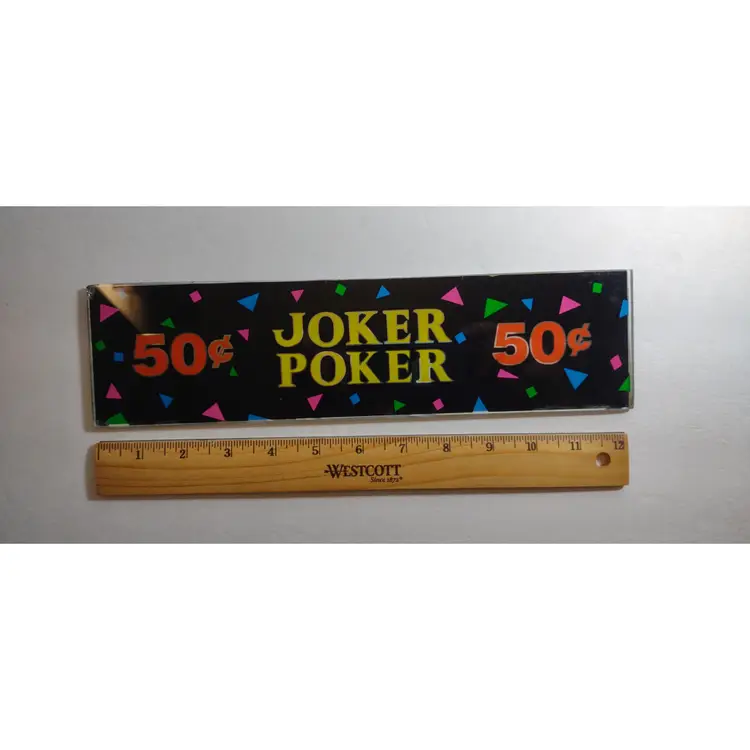 Vintage slot machine glass for unknown game. Has some light age wear but looks great when backlit. Has mirror effect around the letters and numbers. Colorful design. Stock#7B