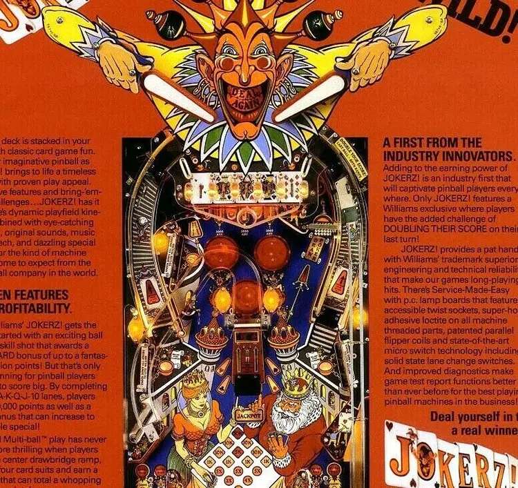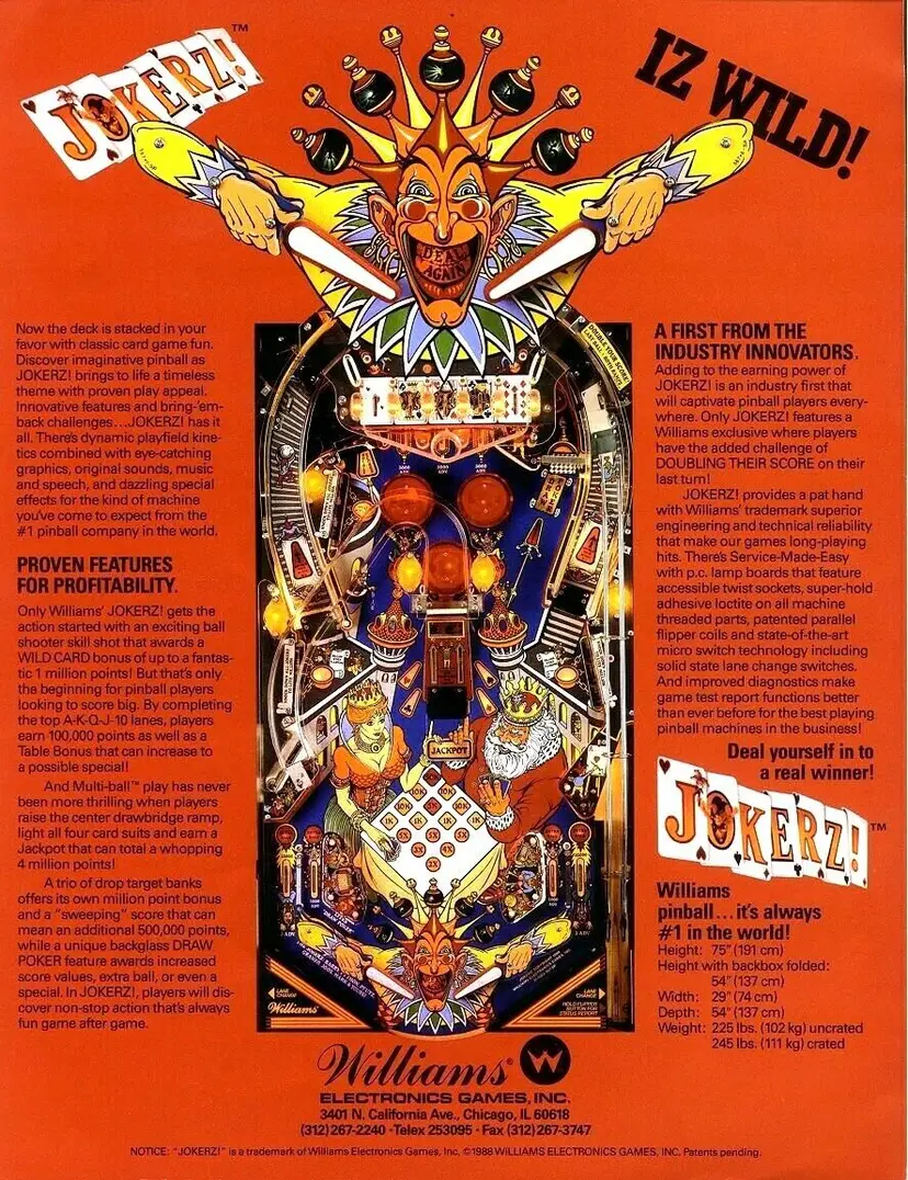 Model: Jokerz Pinball: Flyer Modified Item: No Country/Region of Manufacture: United States Year: 1988 Brand: Williams Subject: Playing Cards