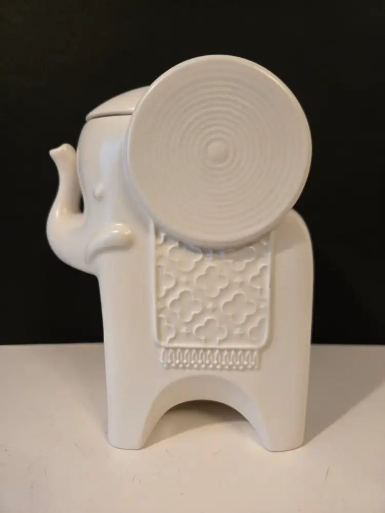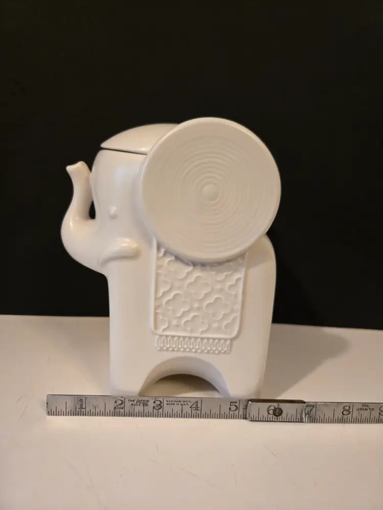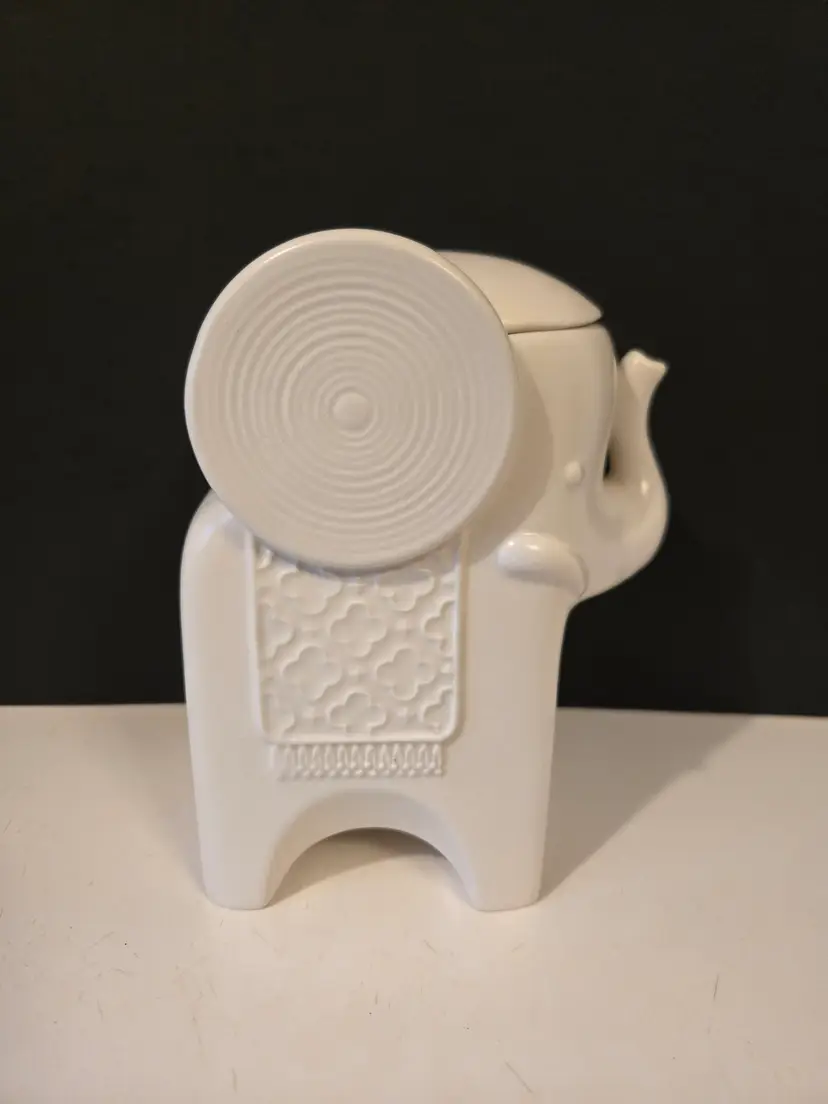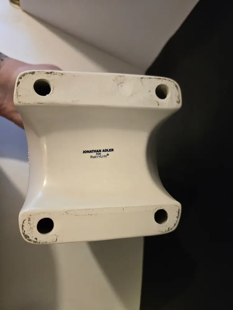 This elegant canister candle holder by Jonathan Adler measures approximately 7.5×6×4.5 inches and is in good used condition, there are a few small glaze chips, please see all photos.