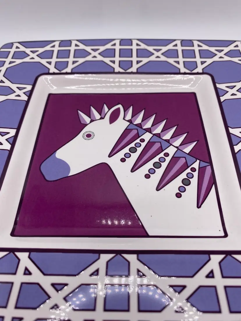 Plate is 6-1/2” square and in good condition. There is a small scuff in bottom right corner.