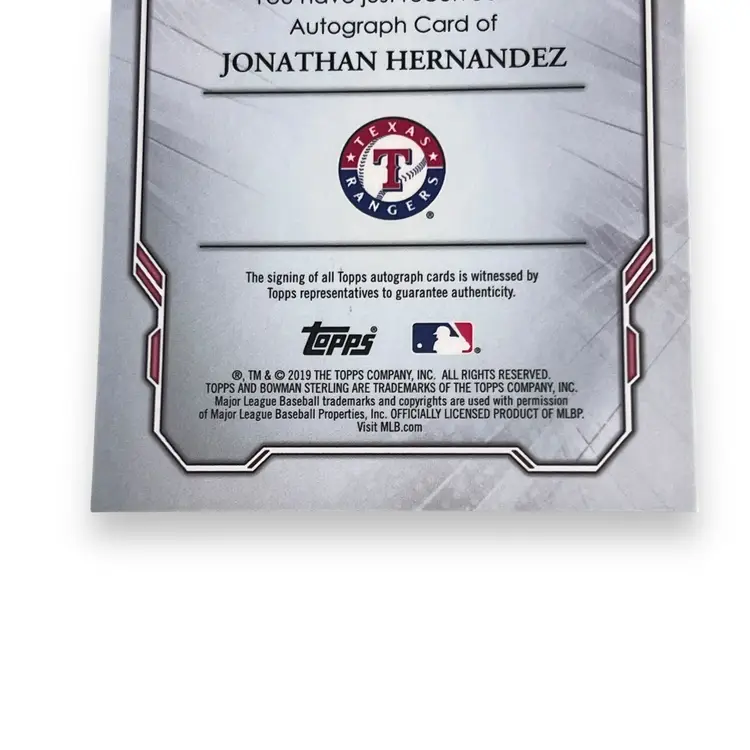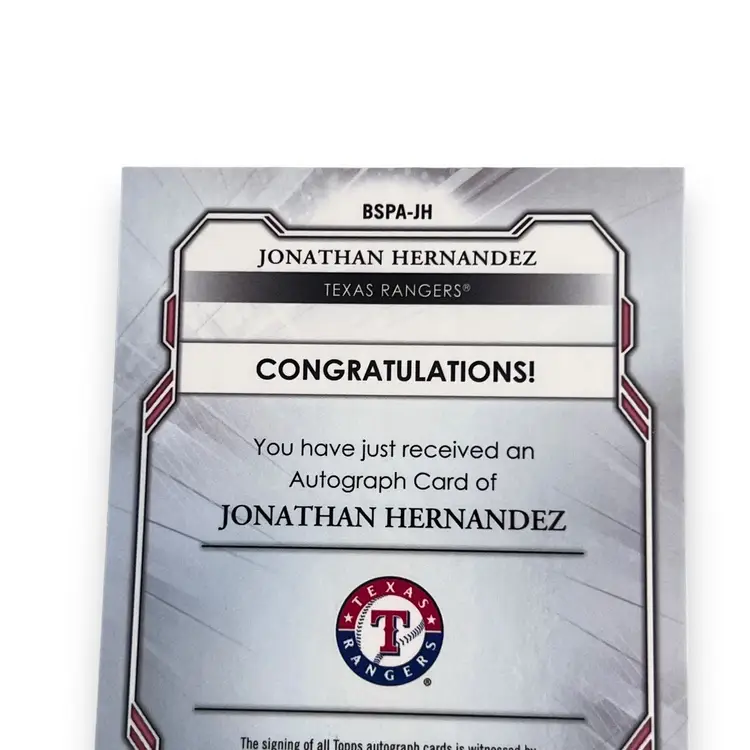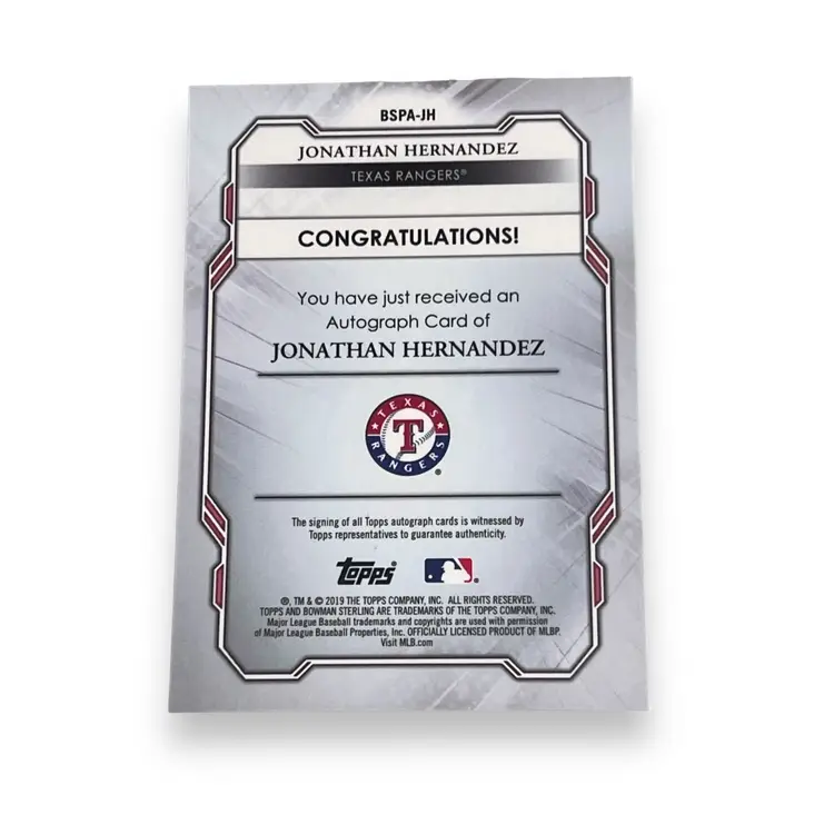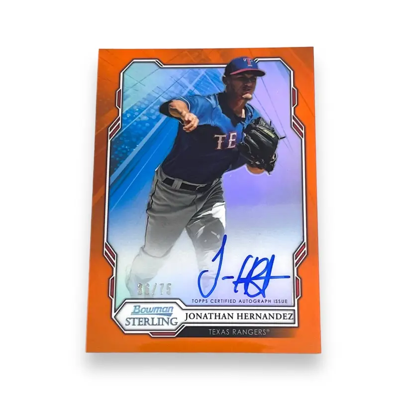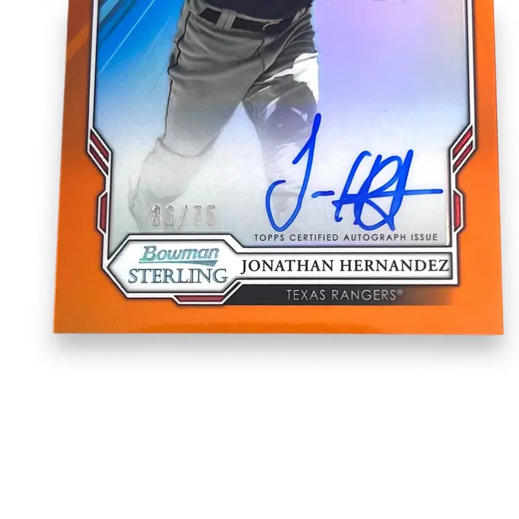Here We Have a Jonathan Hernandez Orange Refractor Auto 36/75 2019 Bowman Sterling Texas Rangers