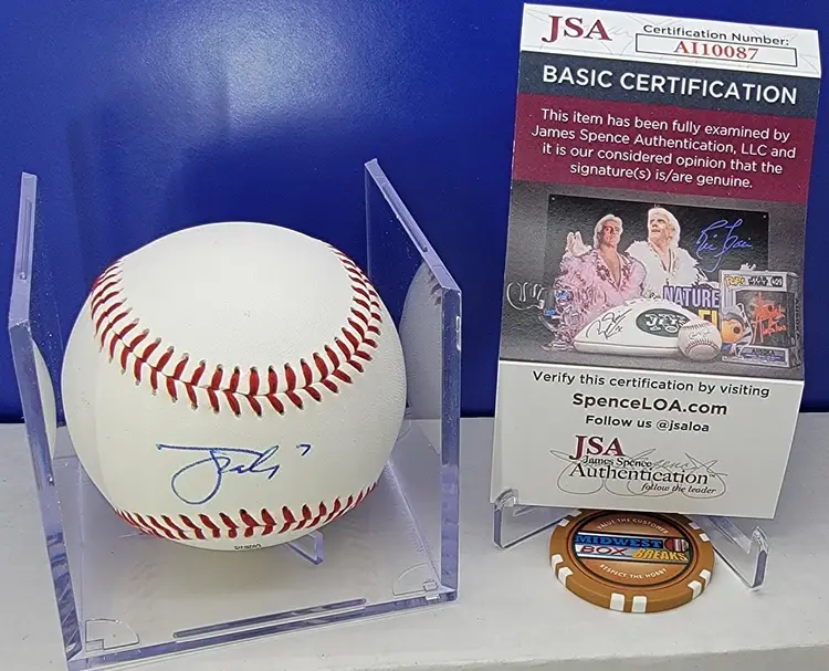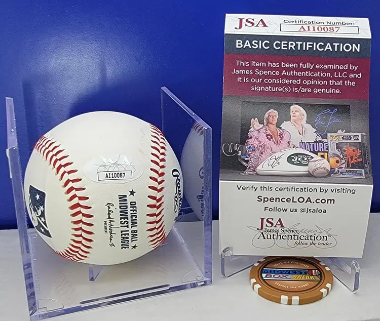 Jonathan India Autographed Midwest League Rawlings Baseball JSA Certificate Kansas City Royals Ships in a baseball display cube with certificate