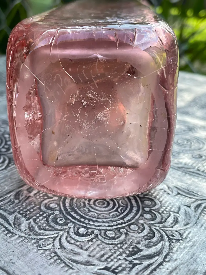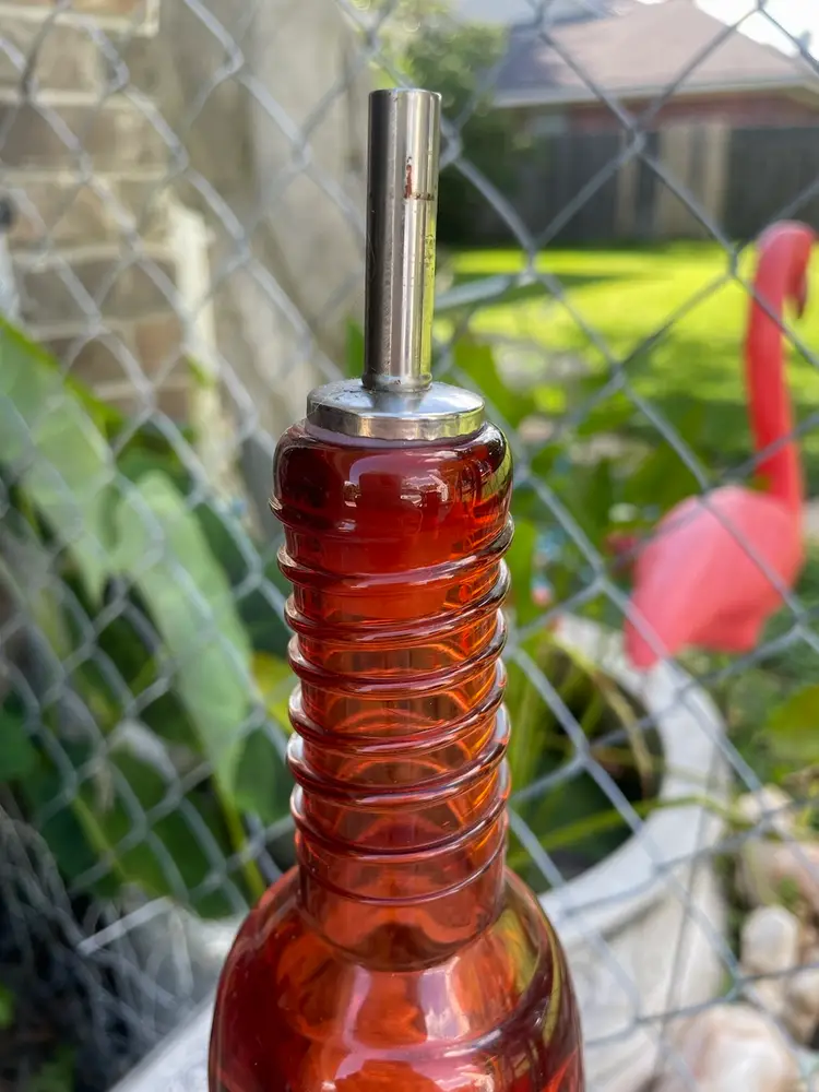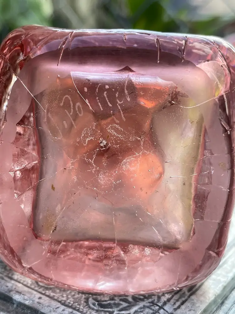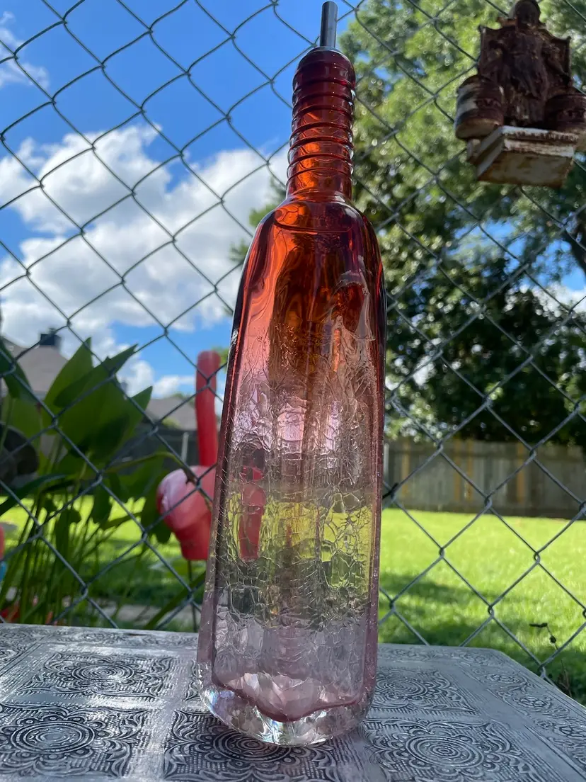Excellent condition oil bottle, hand blown by Jonathan Poirier , signed on the bottom. Crackle glass