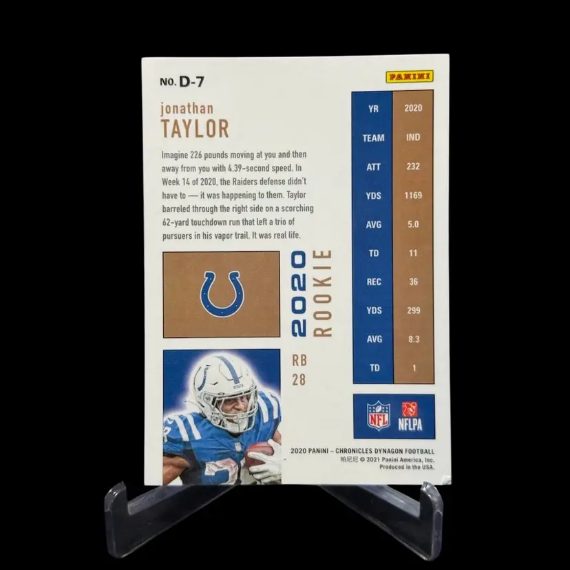 Jonathan Taylor 2020 Panini Chronicles Dynagon D-7 Rookie Insert SP Colts