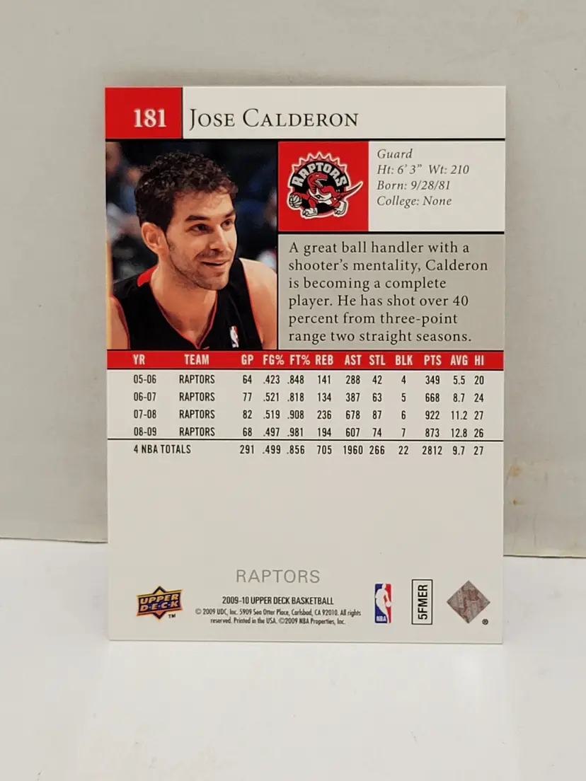 JOSE CALDERON🏆#181 Upper Deck 2009-10 NBA Card