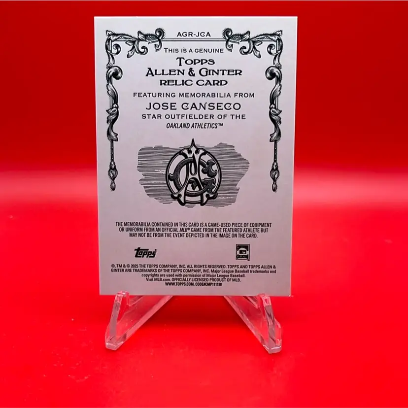 Jose Canseco 2025 Topps Allen & Ginter Full Size Relic Oakland A’s