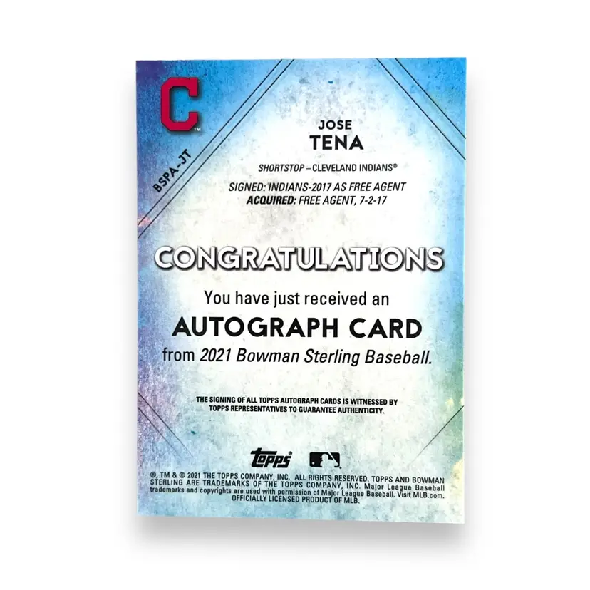 Here We Have a Jose Tena 2021 Bowman Sterling Autograph Washington Nationals BSPA-JT