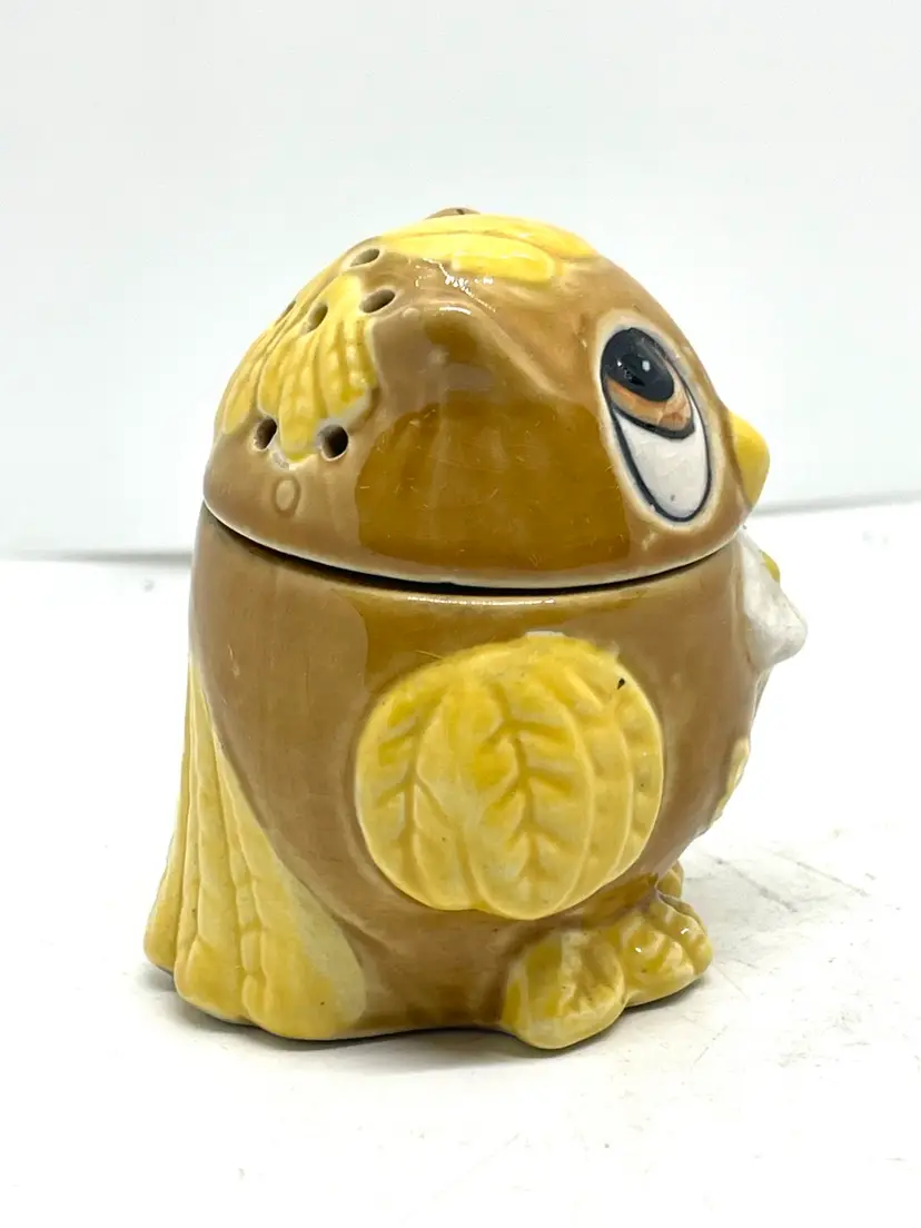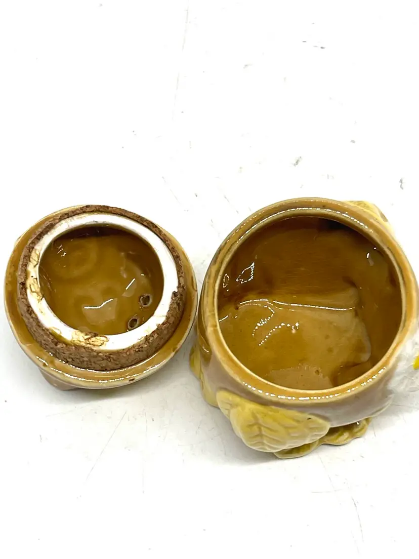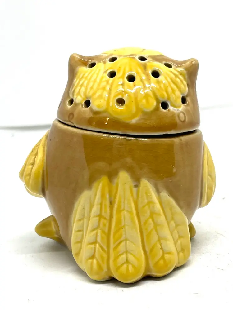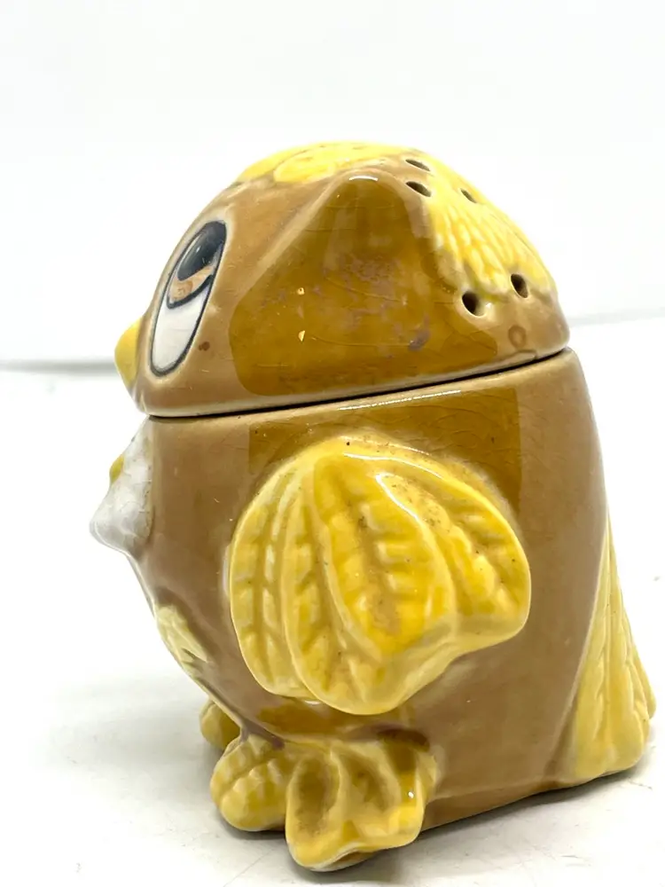 Hard to Find Vintage Josef Original Tan and Yellow Refrigerator Fridge Fresh Owl Baking Soda ceramic small container designed by Lorrie Huff. Made in Korea