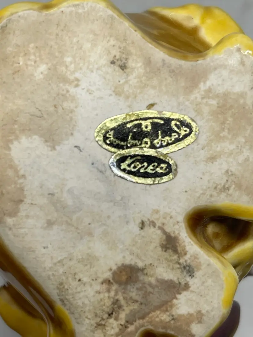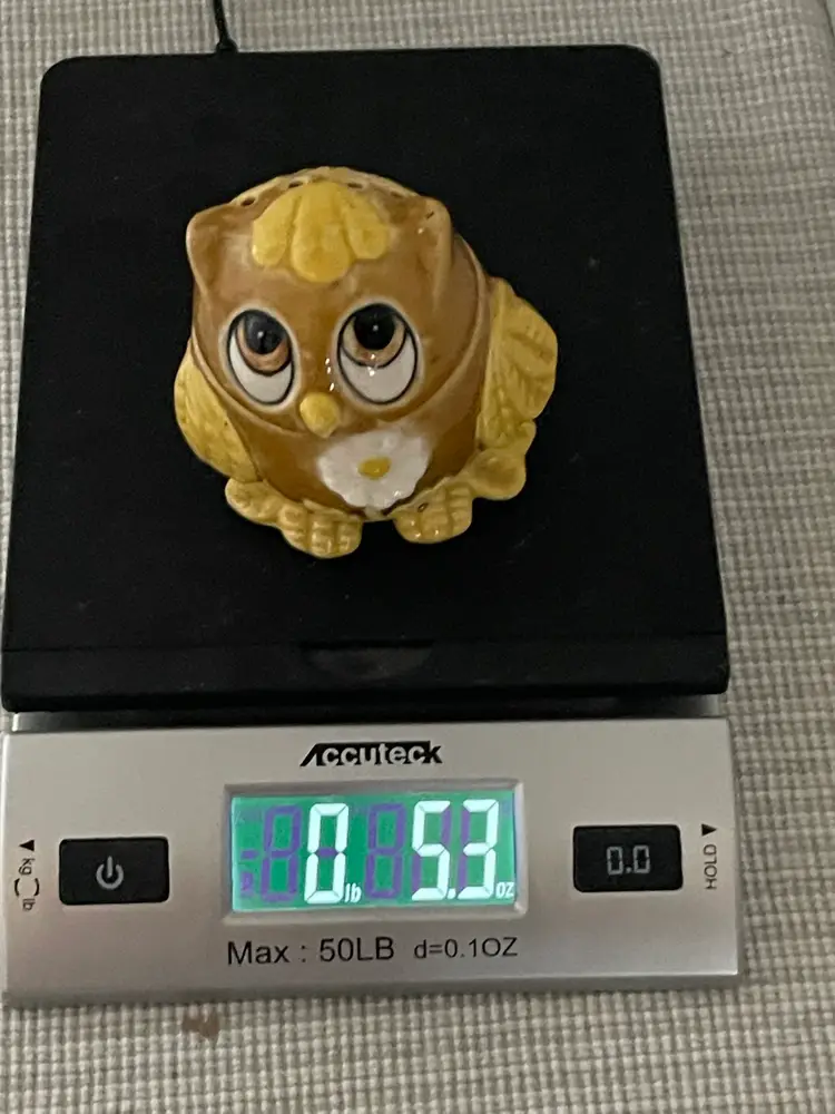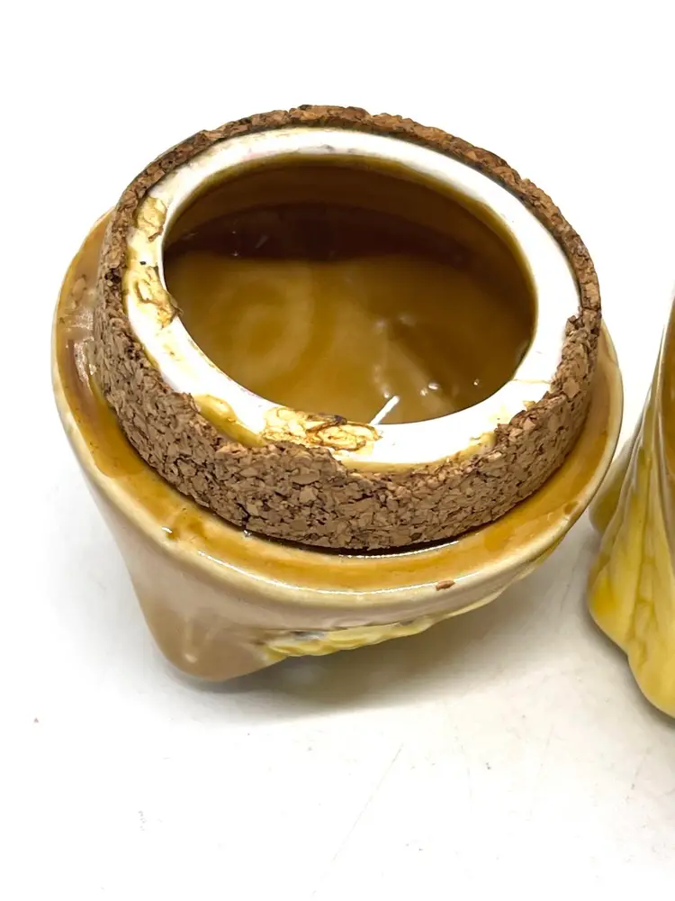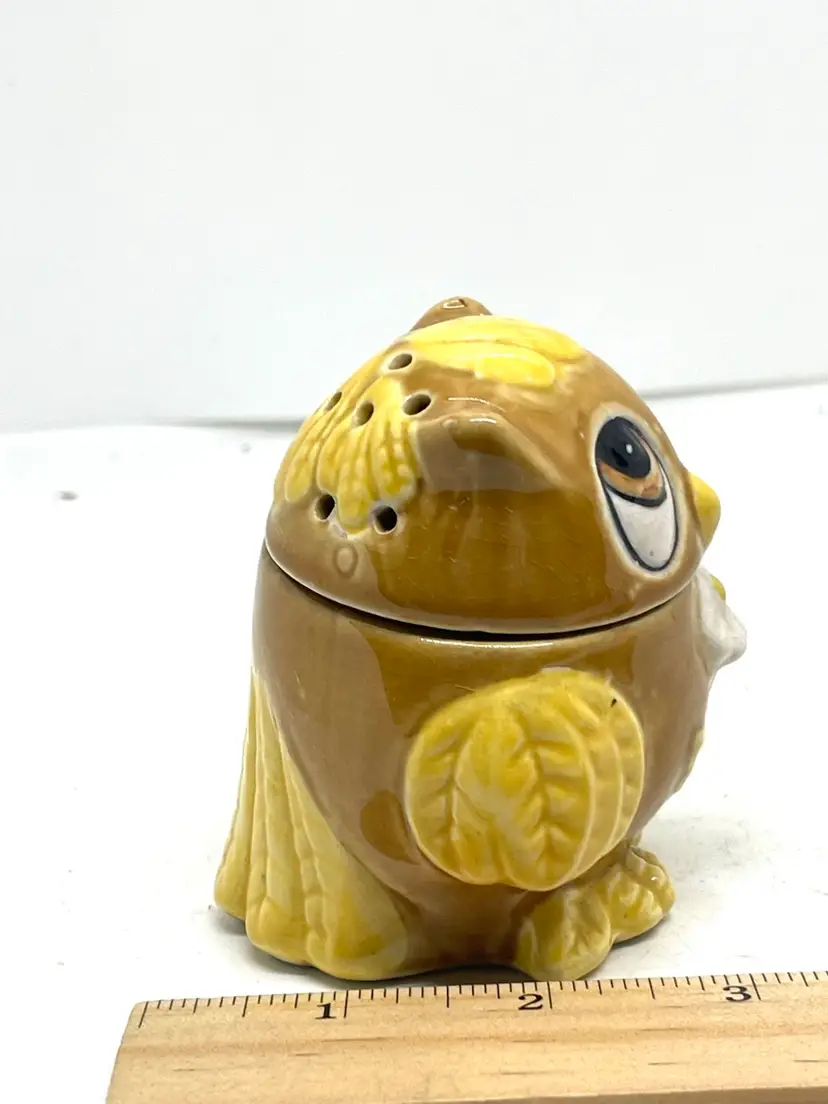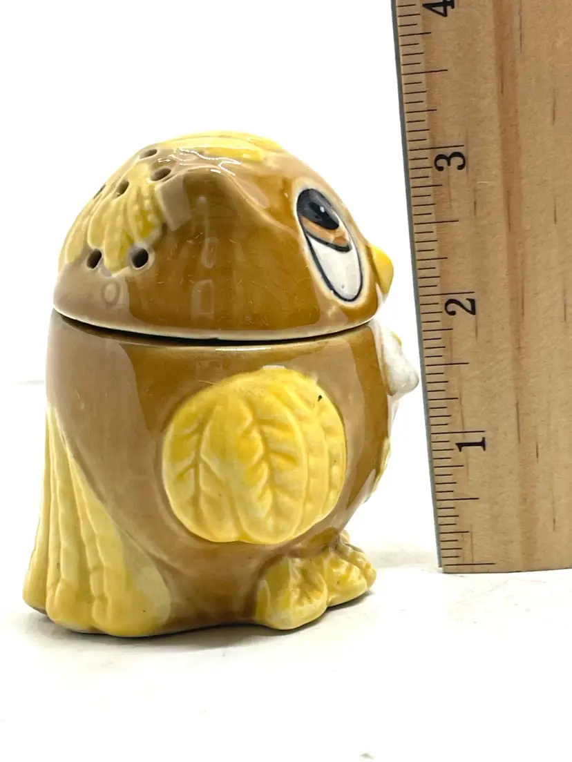 Hard to Find Vintage Josef Original Tan and Yellow Refrigerator Fridge Fresh Owl Baking Soda ceramic small container designed by Lorrie Huff. Made in Korea