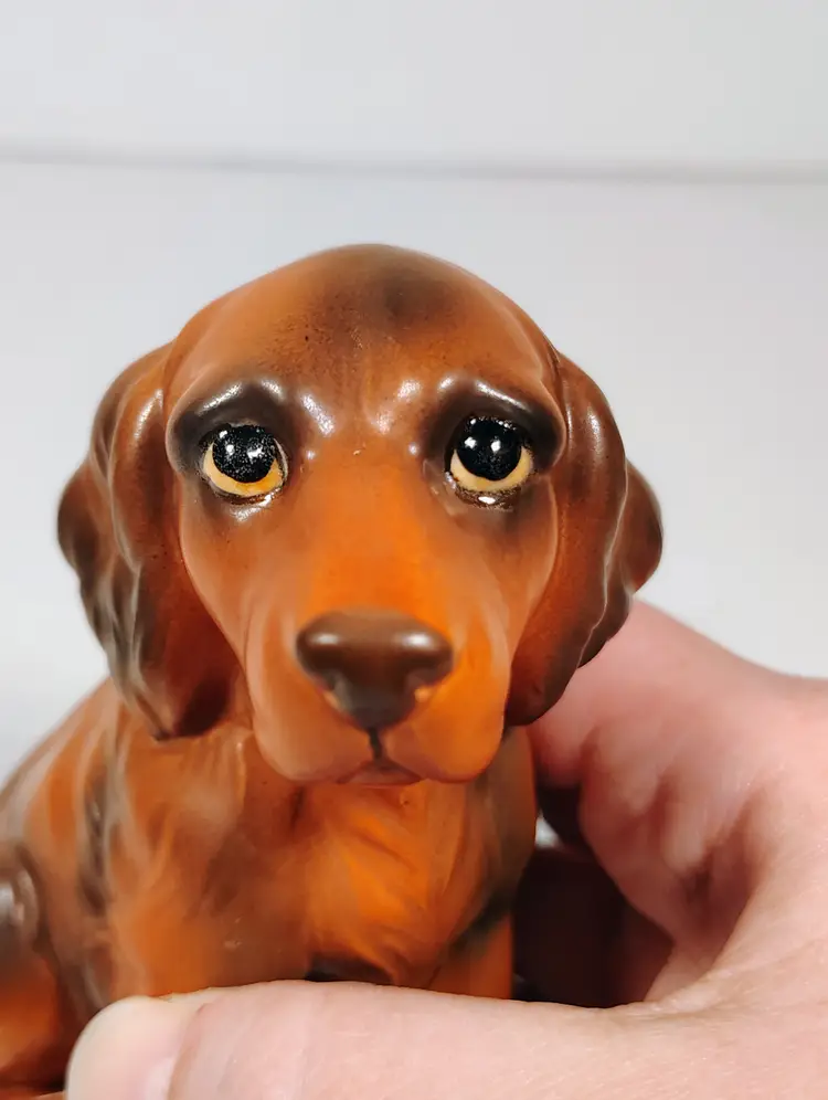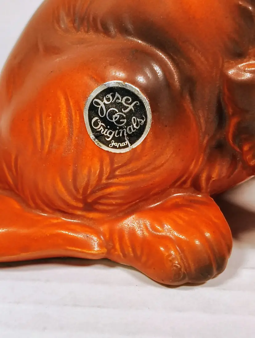 This adorable dog figurine is a Josef Originals. I'm not exactly sure of the breed, I looked up several and couldn't find the exact match.