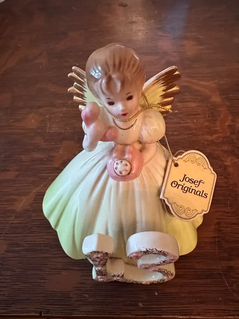 This birthday angel was clearly loved as it’s in perfect condition including its original hang tag. Stands 6 inches tall